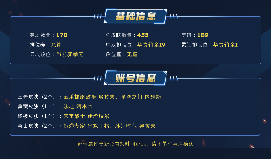 皮肤太多只截了部分图------------下单前查下游戏ID,确保段位是您所需要的,注意账号是否允许排位,避免浪费您的时间~