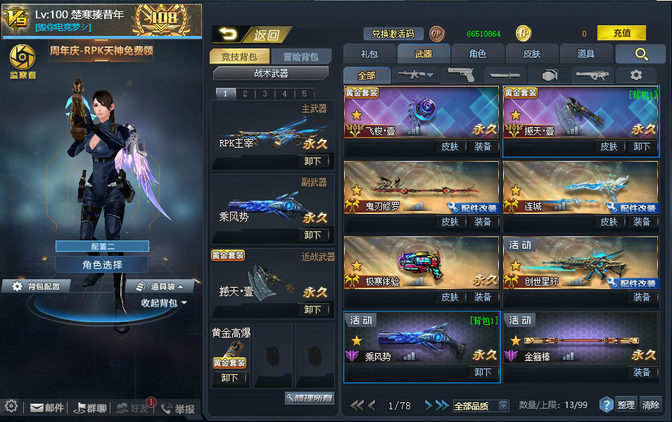 【配件武器】『满配鬼刃修罗』『满配创世星环』『满配连城』『满配幻锋-樱之舞』『 满配碎裂者』『满配虚空子矛』 『二配戏法-彩虹宝石』『二配耀光-夜光物质』『一配漫游-渐变冰雕』