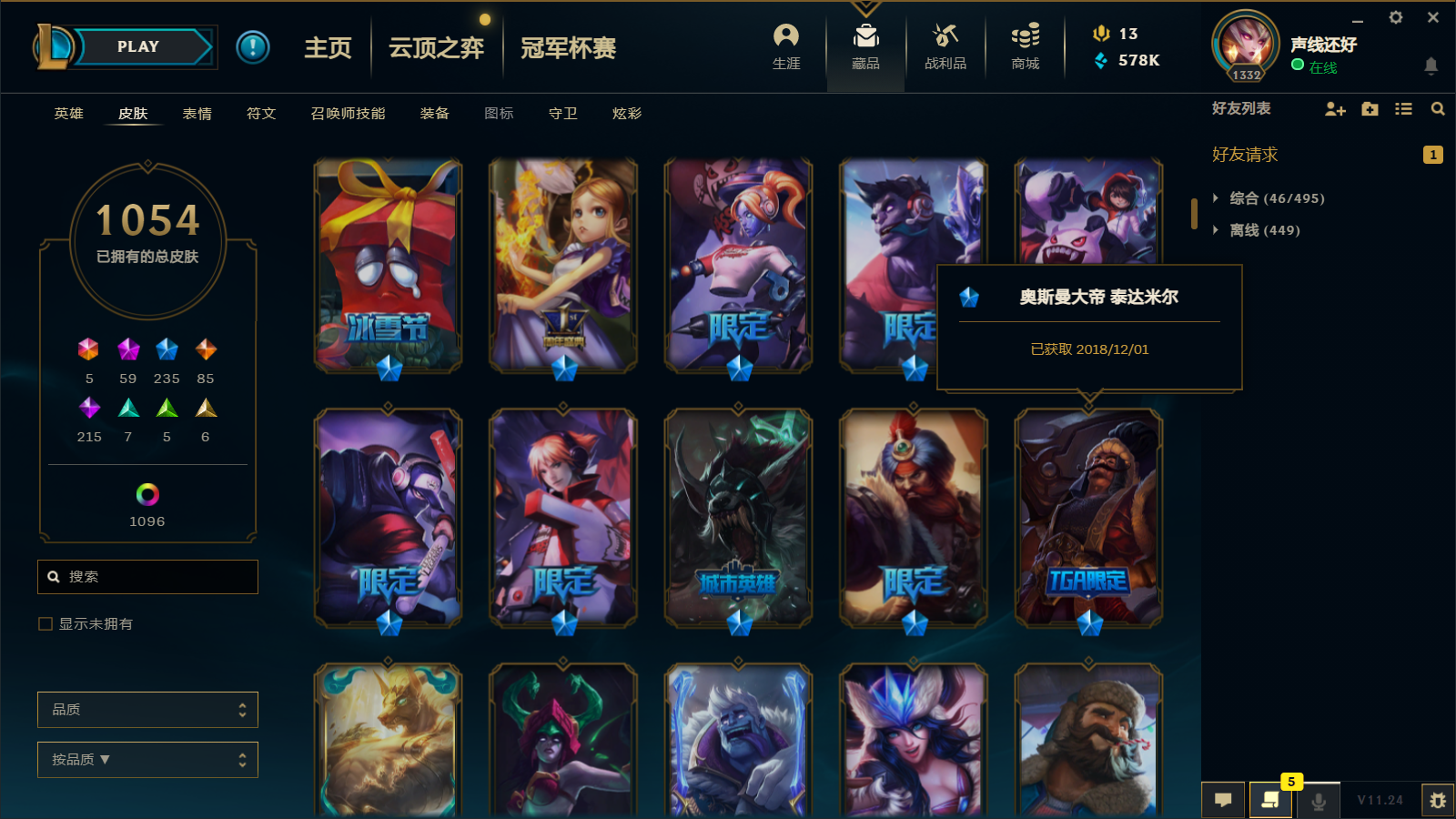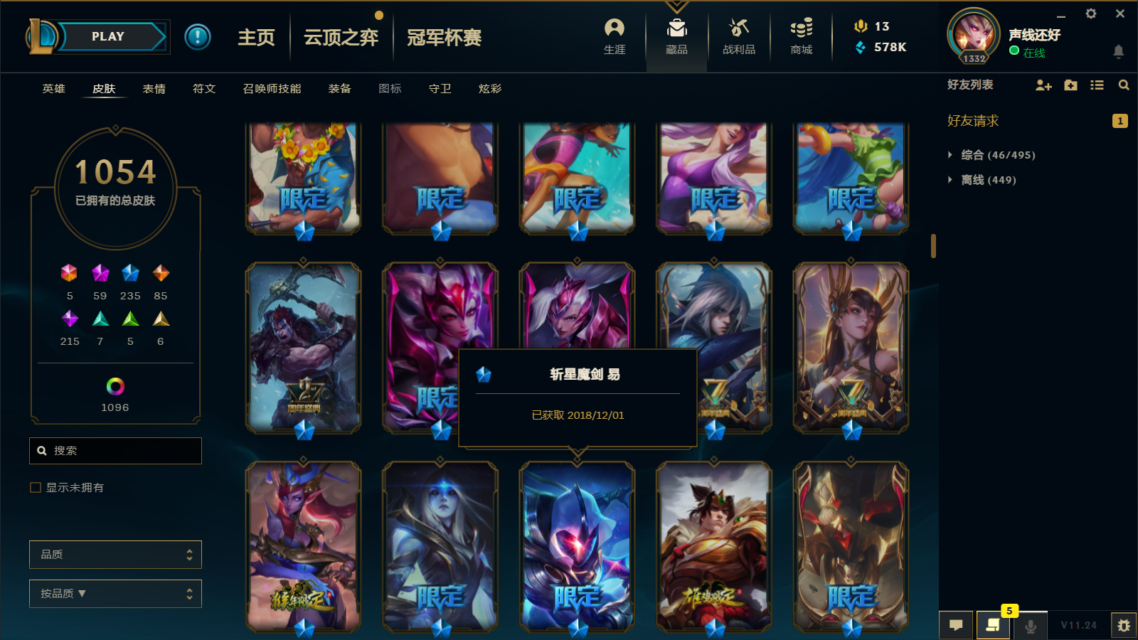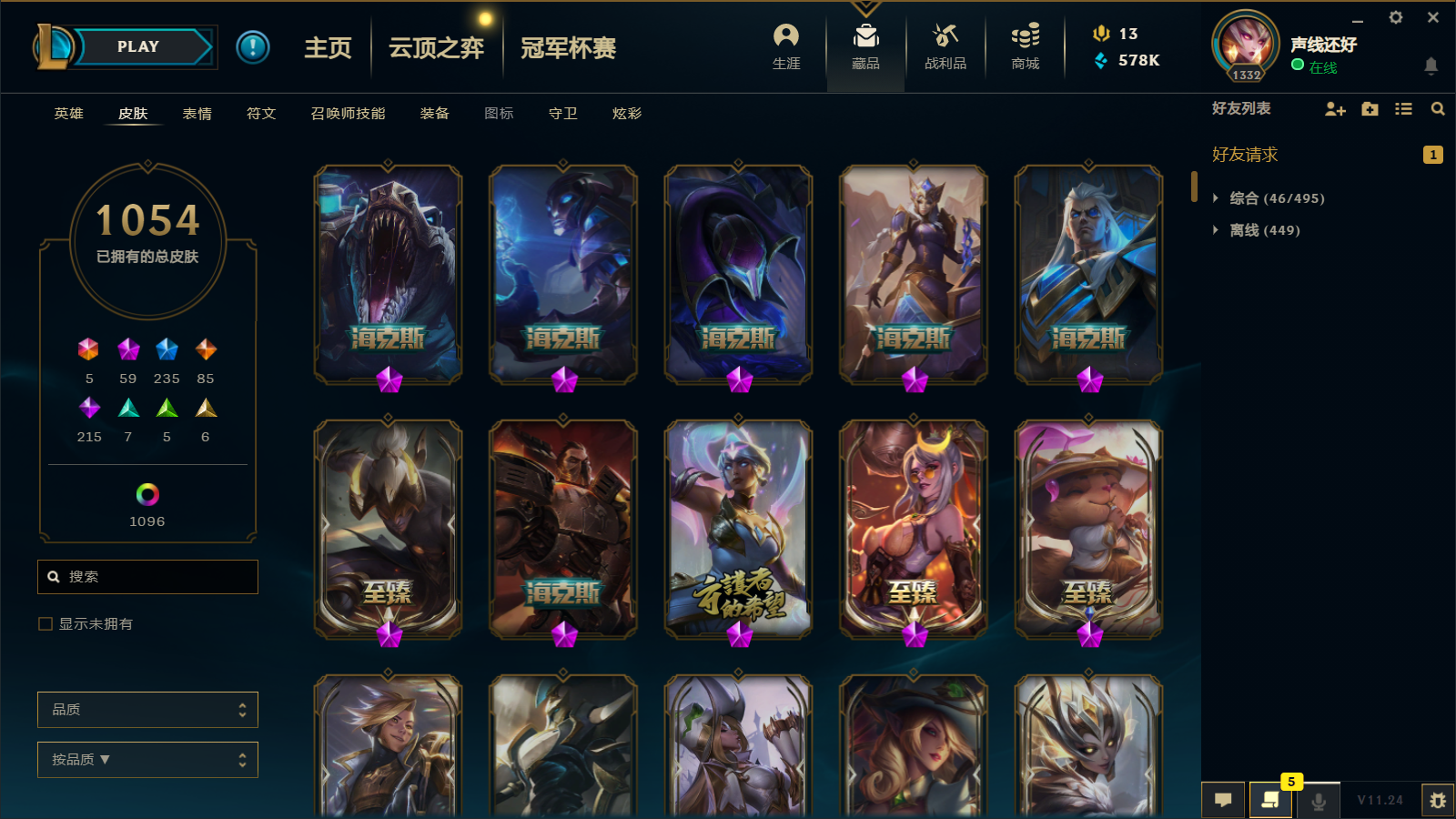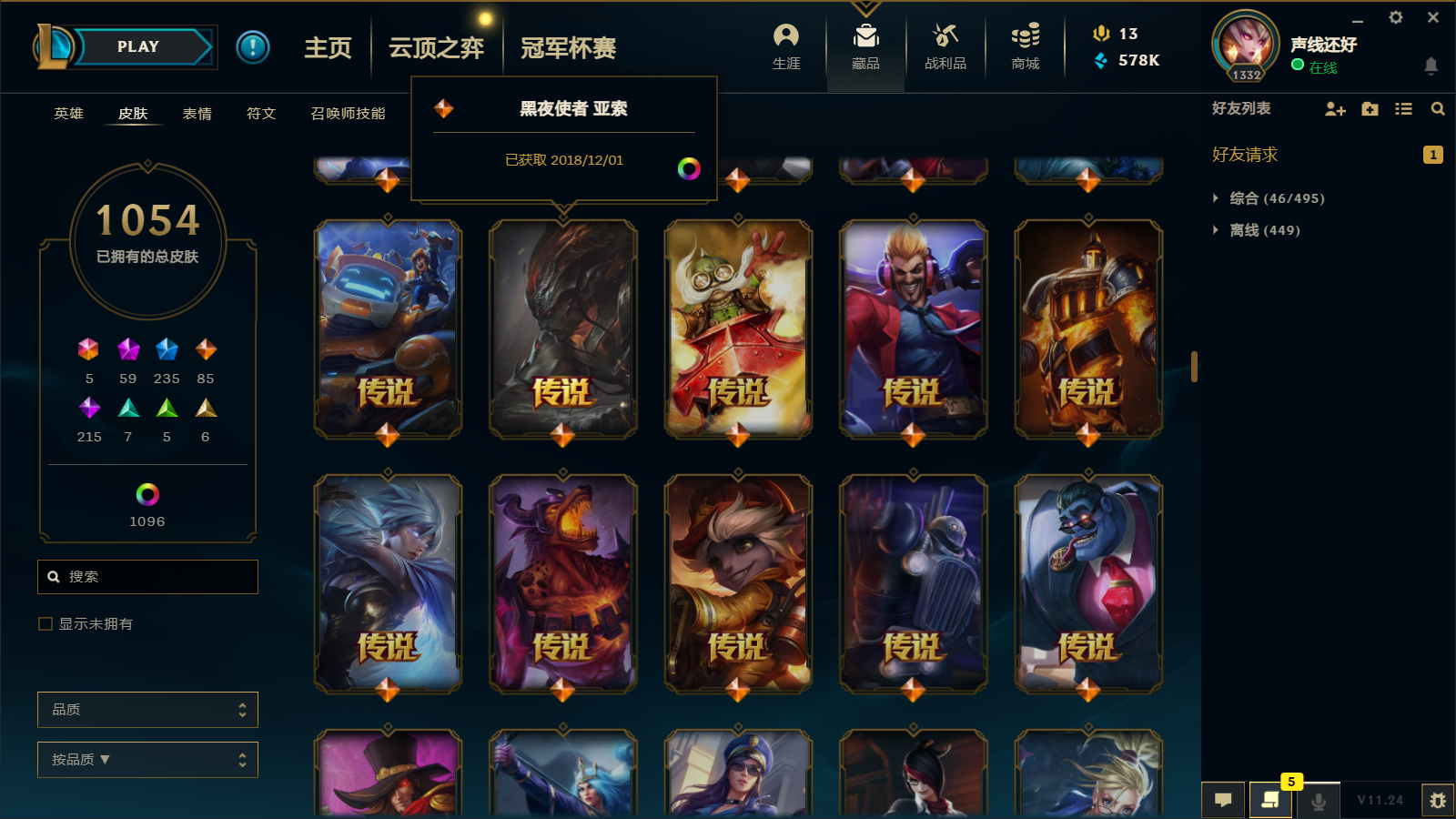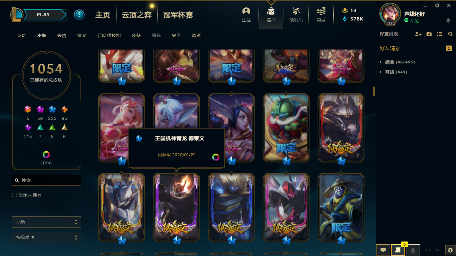 2400皮肤〓70至臻海克斯〓摄魂蓝龙瞎〓斩星哥特〓玉剑男女刀〓王国机神全套〓黑夜黎明