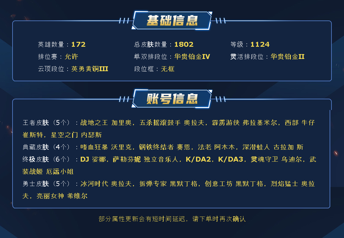 ~~喜欢记得收藏~~可排位~~1724皮全英雄丨60神话/至臻/海克斯丨IG套丨神龙尊者套丨灵魂莲华套丨FPX套丨KDA套丨甜心霞洛丨玉剑女刀丨破败锤石丨甜心格温丨泳池佐伊丨哨兵薇恩丨女帝风女丨福牛厄斐琉斯丨电玩女警卡莎丨觅心悠米金克斯丨星守佐伊狐狸风女ez~~租之前尽量查一下游戏ID,确保段位是您需要的,避免浪费您的时间~~请勿挂机逃跑故意送人头,谢谢合作,谢谢~~