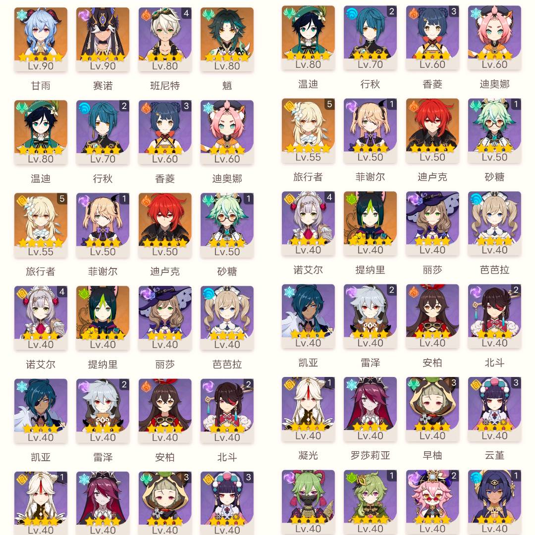【全平台】 90赛诺 赤沙之杖 90甘雨 魈 温迪 提纳里 迪卢克四命班尼特 两命行秋等 号毁过