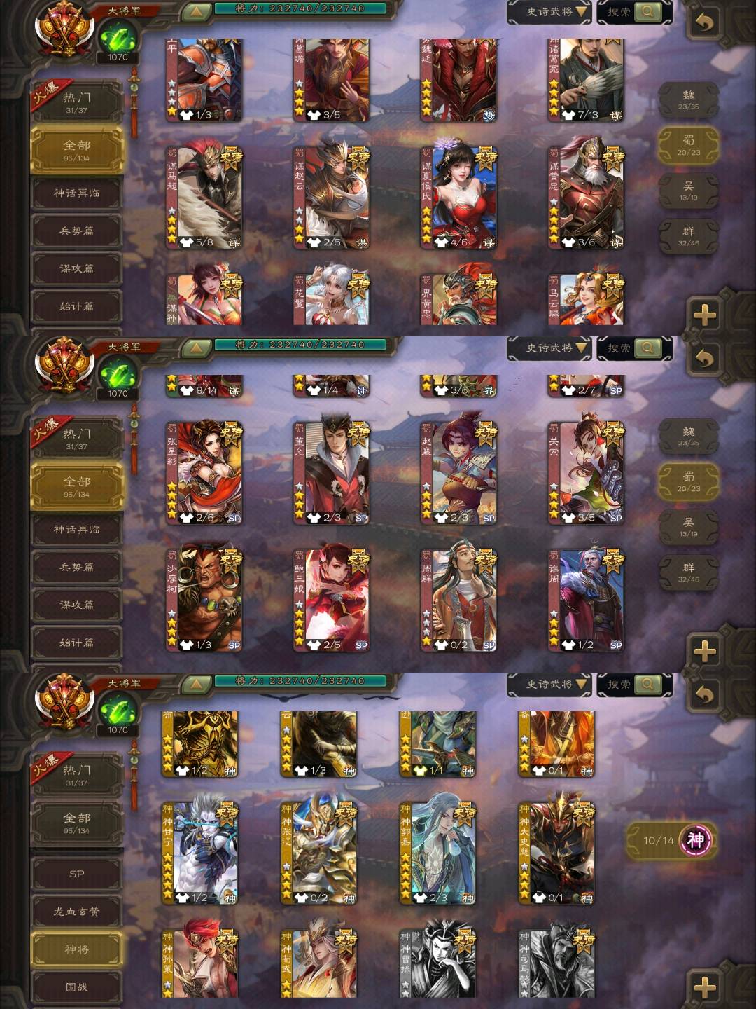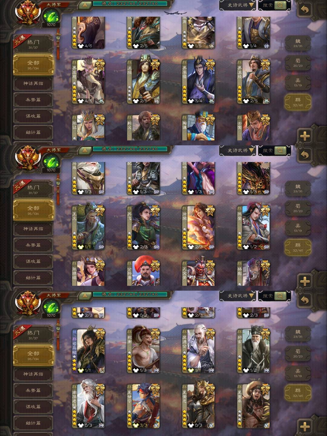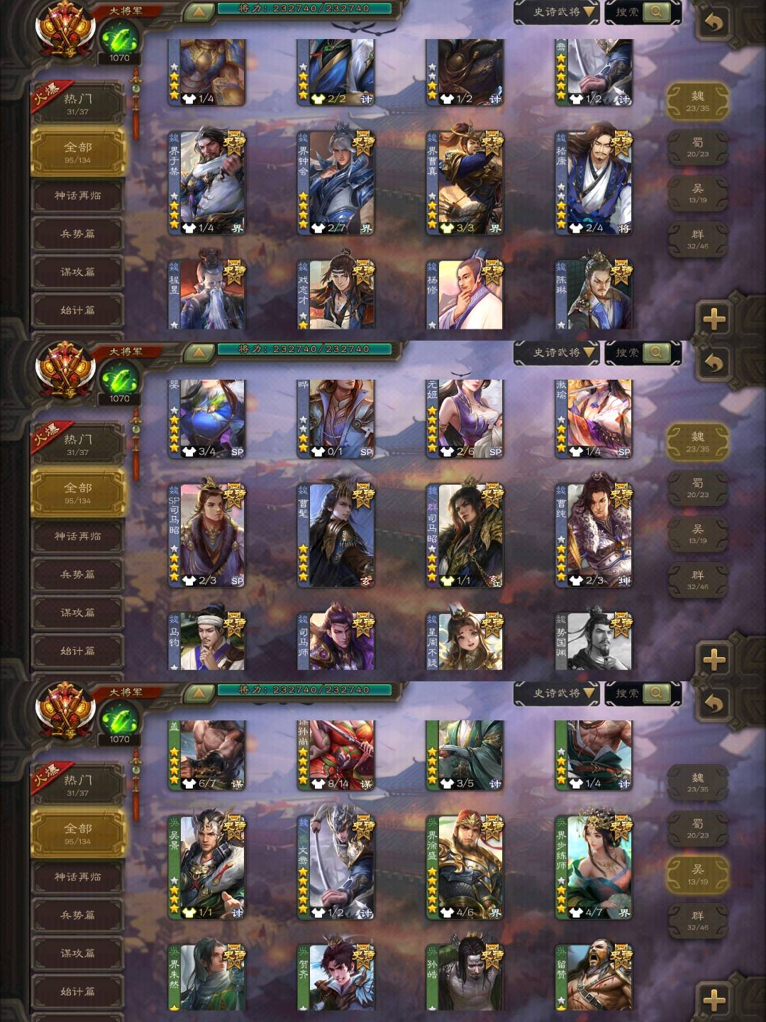 蜀——王平,诸葛瞻,谋马超,谋赵云,谋夏侯氏,花鬘,界黄忠,马云騄,张星彩,董允,赵襄,关索,沙摩柯,周群,谯周,某黄忠,谋孙尚香,鲍三娘,