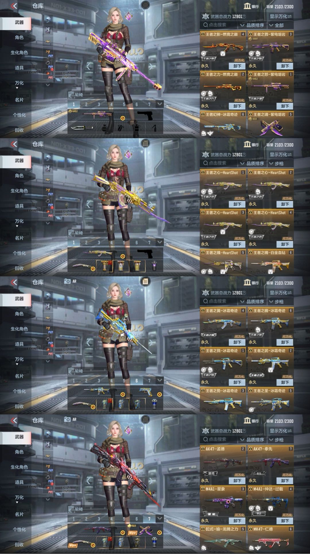 ❤️🔥常用步枪:紫电熔岩/冰霜王戮✨女团王心至尊✨女团/冰霜/白金血钻至尊✨冰霜王武至尊✨冰霜王圣至尊✨冰霜王翼至尊✨冰霜王势✨燃竞王影✨星象✨奉先✨仲达过载✨龙腾瑜✨仁德✨孟德✨策霸魂✨常胜✨竞界荣光✨雷霆✨波塞冬✨常胜✨游骑兵紫魇✨美杜莎✨81光明✨81阿波罗✨MK47机械✨雷霆✨