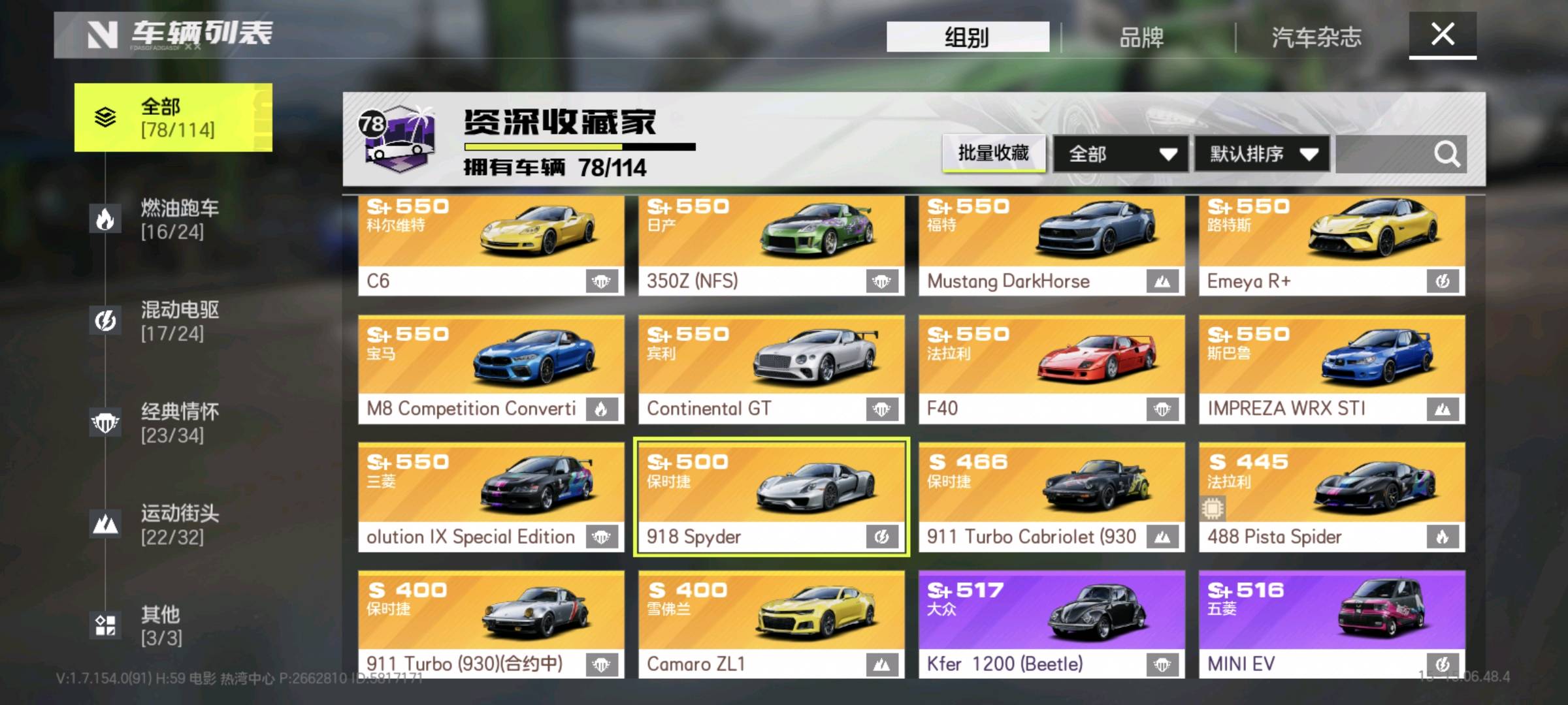46金 金车:路斯特Evija,兰博基尼urus,仰望U9,谢尔比GT500,保时捷911,日产GTR,玛莎拉蒂MC20,仰望U8,日产350Z(NFS),兰博基尼SVJ,道奇地狱猫,红旗s9,道奇SRT-10,杜卡迪,马自达rx7,福特mdh,法拉利296,G66,布加迪cps,兰博基尼rev,奥迪r8,科尔维特c6,迈凯轮p1,宾利GT,本田NSX,科尼塞克Agera R,兰博基尼Revuelto,斯巴鲁IWS,丰田AE86
