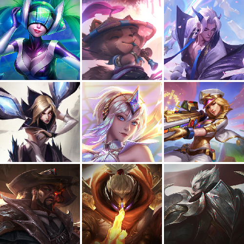 【重要皮肤】至高天凯尔至臻 西部魔影伊芙琳至臻 魂蔷薇烈娜塔至臻 斗魂觉醒萨科至臻 青花瓷丽桑卓至臻 北极星使者沃里克至臻 青花瓷拉克丝至臻 女帝黛安娜至臻 未来战士卢锡安至臻 真实伤害赛娜至臻 星之守护者索拉卡至臻 源计划逆流塞拉斯至臻 王国机神玄武盖伦至臻 神龙尊者炎龙瑟提至臻 KDA二代卡莎至臻 KDA伊芙琳至臻 烈焰美人薇恩至臻 电玩女神凯特琳至臻 魅惑女巫厄运小姐至臻 源计划正义艾瑞莉娅至臻 绒毛菲兹至臻 绒毛菲兹2022至臻 未来战士锤石至臻 未来战士锤石2022至臻 灰烬守护者慎 灰烬骑士莫德凯撒 灰烬杀手塞拉斯 海克斯科技雷克顿 海克斯科技斯维因 海克斯科技玛尔扎哈 海克斯科技阿木木 水晶掠夺者卡兹克 水晶圣骑蕾欧娜 永恒之森奥恩 暗星科加斯 光明哨兵奥拉夫 恐惧新星德莱厄斯 零之枪骑赫卡里姆 摄魂使者薇恩 胜利剑圣易 胜利之王泰达米尔 胜利巨口克格莫 荣誉使者玛尔扎哈 勇敢的心德莱厄斯 海珀利安小队Y03权天使卡蜜尔 玉剑传说舞龙卫 玉剑传说翼剑仙 灵能特工易 银龙裁决泰隆 天龙之子斯莫德 猛虎下山赵信 美猴王孙悟空 定海神珍孙悟空 广寒仙子嫦娥 虎痴之拳蔚 福牛守护者厄斐琉斯 福牛守护者菲奥娜 胜利女神瑟庄妮 胜利机器人布里茨 胜利女神奥莉安娜 胜利枪神卢锡安 胜利之剑亚托克斯 冰雪女神辛德拉 魄罗骑士瑟庄妮 圣诞糖果棒厄运小姐 死亡誓约劫 死亡誓约维克托 勇敢的心德莱厄斯 泳池派对普朗克 泳池派对奥莉安娜 泳池派对塔莉垭 泳池派对李青 泳池派对雷克顿 制胜金球拉莫斯 DRX凯特琳 EDG厄斐琉斯 FPX锤石 FPX薇恩 FPX普朗克 iG洛 iG卡莎 iG艾瑞莉娅 SSG纳尔 SKTT1娜美 SKTT1瑞兹 SKTT1阿兹尔 SKTT1伊莉丝 SSW雷恩加尔 SSW泰隆 SSW图奇 SSW辛吉德 SKTT1劫 暗杀星奥莉安娜 暗杀星努努和威朗普 暗杀星慎 Fnatic迦娜 Fnatic嘉文四世 防暴天使凯尔 钢铁之翼艾尼维亚 冠军典狱长锤石 冠军之血希瓦娜 冠军之志瑞兹 鬼影森森茂凯 鬼影重重魔腾 胡桃夹子萨科 警用试作体K9内瑟斯 南瓜头费德提克 破空枪骑孙悟空 圣诞开心鬼提莫 圣诞狂欢基兰 圣诞狂欢努努和威朗普 圣诞老人古拉加斯 圣诞玩偶波比 圣诞驯鹿克格莫 糖果使徒费德提克 无头骑士赫卡里姆 喜庆之树茂凯 邪恶圣诞老人维迦 幸福女神乐芙兰 雪默丁格 勇者阿狸 勇者奈德丽 暗影沃里克 机械迷城加里奥 阿木木主人不要我了 2021全球总决赛嘉文四世 地底世界崔斯特 都铎王朝图奇 十五周年纪念希维尔 十周年纪念安妮 源代码乐芙兰 胜利凤凰艾尼维亚 斗魂觉醒佛耶戈 斗魂觉醒莎弥拉 DJ娑娜 大元素使拉克丝 灵魂守卫乌迪尔 绝息圣堂洛
