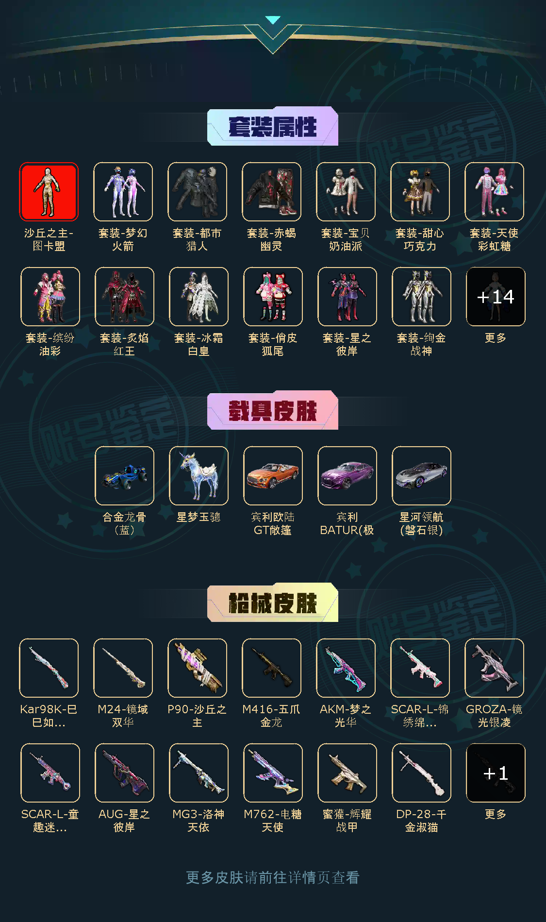 【粉色枪皮】M416-五爪金龙/AKM-梦之光华/SCAR-L-锦绣绵绵/SCAR-L-童趣迷兔/M416-墨龙九天/GROZA-镜光银凌/AUG-星之彼岸/M762-电糖天使/蜜獾-辉耀战甲/Kar98K-巳巳如意/M24-镜域双华/P90-沙丘之主/DP-28-千金淑猫/MG3-洛神天依