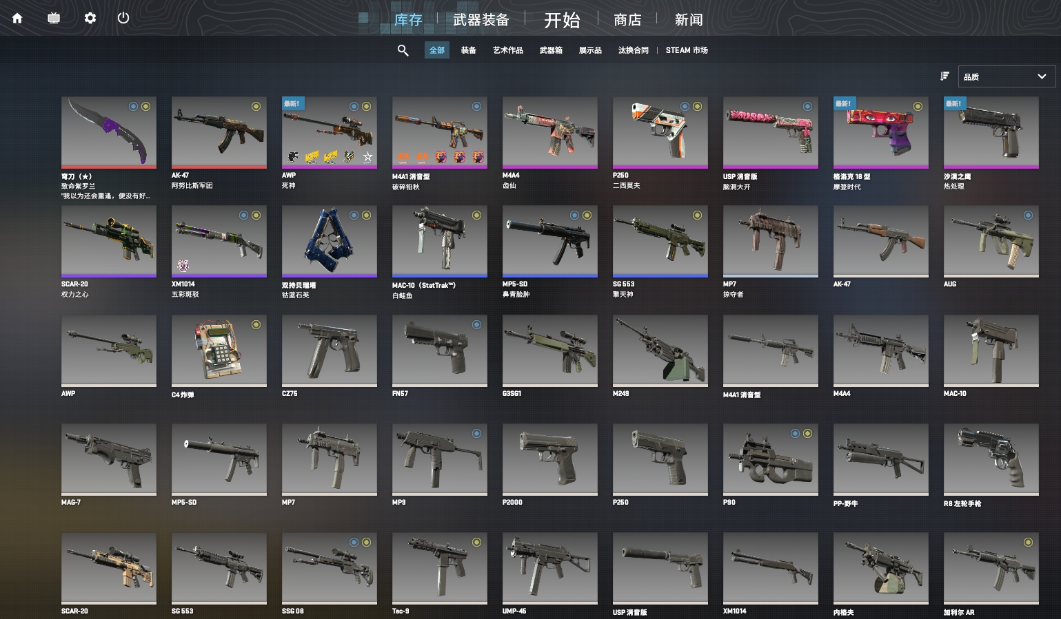 紫罗兰弯刀❤ 死神AWP❤破碎铅秋M4A1❤阿努比斯AK❤二西莫夫P250