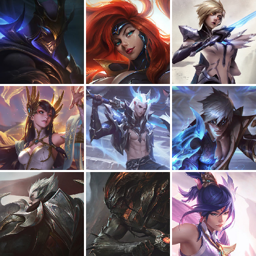 【重要皮肤】凯旋将军德莱厄斯至臻 黑色玫瑰假面舞会卡特琳娜至臻 双城之战2指挥官凯特琳至臻 暗星女王黛安娜至臻 神龙尊者比翼之龙洛至臻 魔女阿卡丽至臻 玉剑传说琴仙子至臻 斗魂觉醒派克至臻 DRX亚托克斯至臻 绝息圣堂厄运小姐至臻 青花瓷丽桑卓至臻 灵魂莲华易至臻 海珀利安小队X09星环灵风迦娜至臻 女帝黛安娜至臻 魔女婕拉至臻 奥术师佐伊至臻 未来战士卢锡安至臻 真实伤害亚索至臻 灵魂莲华提莫至臻 灵能特工伊泽瑞尔至臻 源计划逆流塞拉斯至臻 王国机神玄武盖伦至臻 神龙尊者炎龙瑟提至臻 黑夜使者凯隐至臻 神龙尊者均衡之龙沃利贝尔至臻 飞升战神潘森至臻 KDA二代卡莎至臻 KDA一代卡莎至臻 KDA伊芙琳至臻 绒毛菲兹至臻 绒毛菲兹2022至臻 未来战士锤石至臻 未来战士锤石2022至臻 灰烬守护者慎 灰烬骑士莫德凯撒 灰烬骑士派克 海克斯科技安妮 海克斯科技雷克顿 海克斯科技斯维因 海克斯科技吉格斯 海克斯科技玛尔扎哈 海克斯科技嘉文四世 水晶圣骑艾希 恐惧新星德莱厄斯 摄魂使者薇恩 胜利剑圣易 胜利女神娑娜 胜利之王泰达米尔 胜利巨口克格莫 养蜂人辛吉德 电玩勇者锐雯 玉剑传说舞剑仙 玉剑传说神机花火 点心宝贝阿木木 点心宝贝萨勒芬妮 点心宝贝辛德拉 剪纸仙灵嘉文四世 剪纸仙灵烬 剪纸仙灵娜美 银龙裁决泰隆 剪纸仙灵艾瑞莉娅 剪纸仙灵盖伦 剪纸仙灵婕拉 猛虎下山赵信 虎痴之拳蔚 张辽文远 纳财大帝塔姆 王国机神朱雀蕾欧娜 胜利女神瑟庄妮 胜利机器人布里茨 怦然心动凯特琳 水晶玫瑰阿克尚 水晶玫瑰迦娜 甜心之翎洛 觅心游侠卢锡安 觅心之翼奎因 幽梦玫瑰辛德拉 幽梦玫瑰泰隆 双城之战2斗士蔚 双城之战2微光实验室辛吉德 北极星守望者佐伊 北极星猎人斯维因 冬境仙灵索拉卡 雪球也能爆炸吉格斯 圣诞捣蛋鬼金克丝 持胡萝卜的雪人易 狂心冰王图奇 魄罗骑士瑟庄妮 平安夜女神娑娜 魅惑女巫奈德丽 大魔王提莫 死亡誓约卡特琳娜 灵魂收割者索拉卡 泳池派对凯特琳 泳池派对佐伊 泳池派对奥莉安娜 泳池派对黑默丁格 泳池派对塔莉垭 泳池派对厄运小姐 泳池派对塔里克 泳池派对格雷福斯 克格汪 制胜金靴李青 DRX阿卡丽 EDG佛耶戈 EDG格雷福斯 DWG烬 FPX墨菲特 iG乐芙兰 iG菲奥娜 SSG纳尔 SSG塔莉垭 SSG嘉文四世 SKTT1烬 SKTT1娜美 SKTT1奥拉夫 SKTT1卡莉丝塔 SKTT1瑞兹 SKTT1伊莉丝 SKTT1雷克顿 SSW泰隆 SSW图奇 SSW辛吉德 SKTT1贾克斯 SKTT1婕拉 暗杀星蒙多 暗杀星努努和威朗普 暗杀星慎 Fnatic古拉加斯 Fnatic嘉文四世 冰雪兽纳尔 防暴士兵辛吉德 钢铁之翼艾尼维亚 冠军蔷薇乐芙兰 冠军之血希瓦娜 冠军之隐劫 冠军之志瑞兹 鬼影重重魔腾 红桃杰克崔斯特 胡桃夹子萨科 警用试作体K9内瑟斯 蒙多蒙多 密林猎手提莫 南瓜头费德提克 女猎手希维尔 圣诞精灵崔丝塔娜 圣诞开心鬼提莫 圣诞狂欢基兰 圣诞狂欢努努和威朗普 圣诞玩偶波比 圣诞驯鹿克格莫 外星装甲库奇 无头骑士赫卡里姆 邪恶圣诞老人维迦 幸福女神乐芙兰 雪球也能爆炸吉格斯 雪装奈德丽 野兽猎人泰达米尔 英勇玩具兵普朗克 永恒之森乐芙兰 勇者阿狸 征服者韦鲁斯 暗影沃里克 冠军之箭艾希 魅惑女巫辛德拉 2023全球总决赛雷克顿 波比的巧克力工坊 都铎王朝图奇 十五周年纪念希维尔 十周年纪念安妮 源代码乐芙兰 神凰行者瑞羽圣凰艾尼维亚 武装战姬厄运小姐 绝息圣堂洛