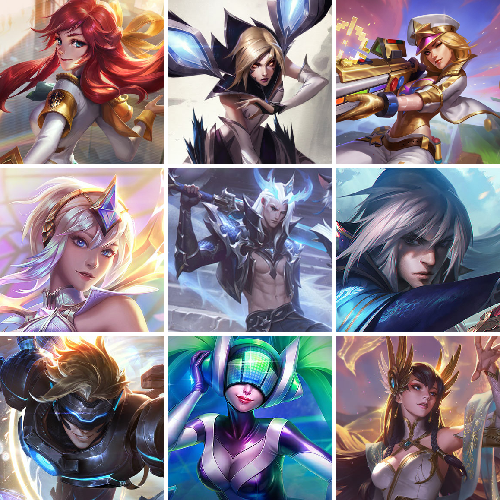 【重要炫彩】玉净夜叉凯特琳炫金神机 南天之怒沃里克炫金天神 冰霜之刃艾瑞莉娅炫金 星之守护者金克丝黑洞 战斗校长悠米独角兽 奥德赛金克丝恒星游历者 魔女卡蜜尔贪婪 腥红之月卡特琳娜落樱 泳池派对塔莉垭海豚剧院 地狱火卡尔萨斯骄傲之焰 腥红之月易落樱 暗星莫德凯撒美神星之灭 宇航员波比万有引力 怨之砂派克绯幻 可爱可爱粉红红提莫 草莓味糖果兔宝宝提莫 驯龙炮手崔丝塔娜威仪晶龙 源计划末日沃里克幻灭 暗星泽拉斯美神星之灭 禁军统帅赵云 战场BOSS亚索幻灭之刃 糖果大战基兰樱桃流心曲奇 霸天龙神奥瑞利安索尔华天 黑帮管家布隆造梦大师 抵抗军炎魔俄洛伊粉红魅焰 创世之神茂凯温情之霞 喵凯萌萌粉 美喵喵尔 泳池派对璐璐坏坏鹰嘴鱼 EDG厄斐琉斯破军 EDG佛耶戈破军 EDG格雷福斯破军 EDG悠米破军 EDG佐伊破军