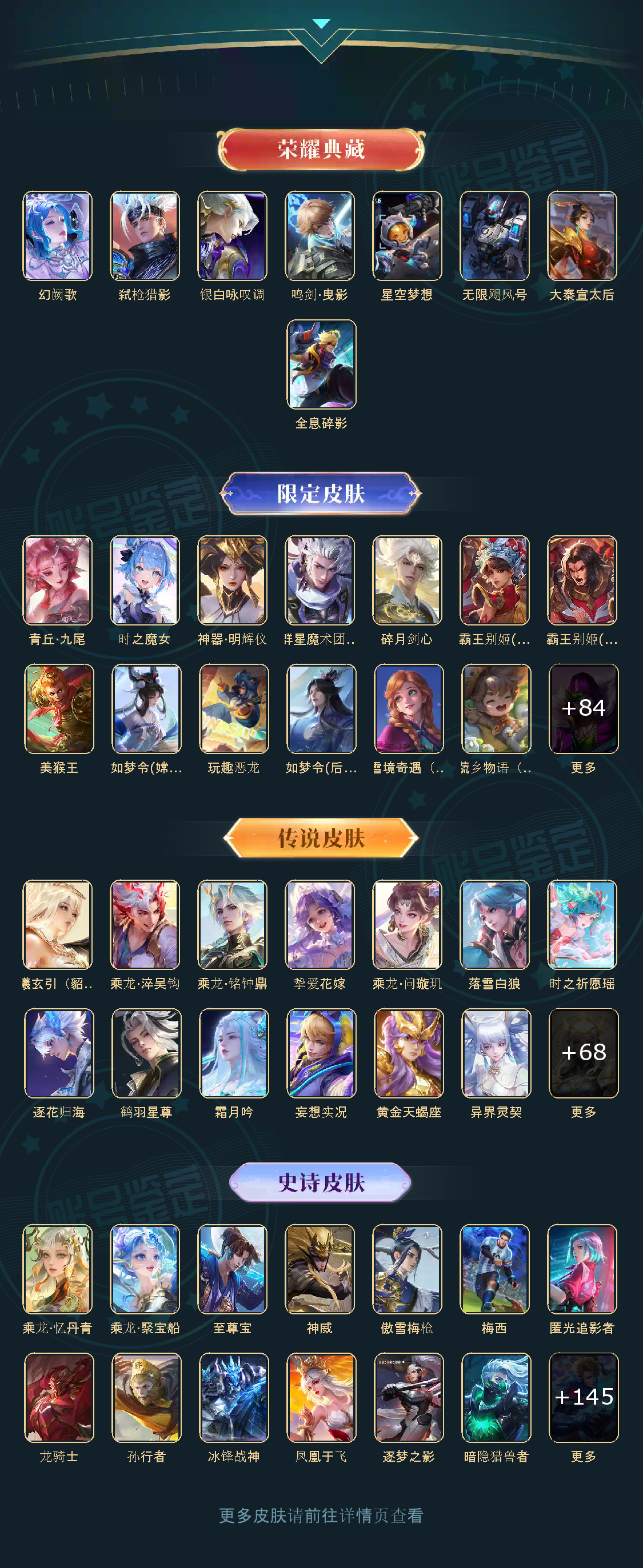 贵族等级V9,英雄数量125,典藏皮肤数8,皮肤数量516,