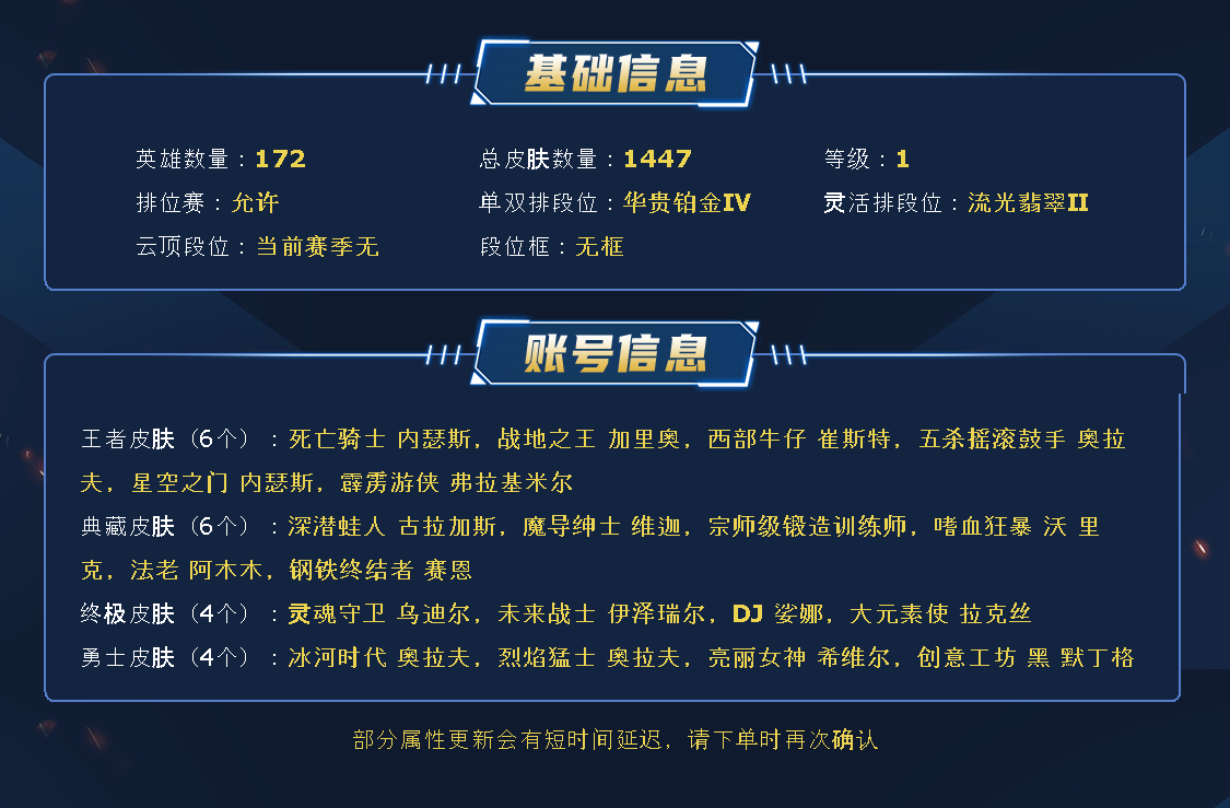 ~~喜欢记得收藏~~可排位~~1411皮全英雄丨835原皮576炫彩~~租之前尽量查一下游戏ID,确保段位是您需要的,避免浪费您的时间~~请勿挂机逃跑故意送人头,谢谢合作,谢谢~~