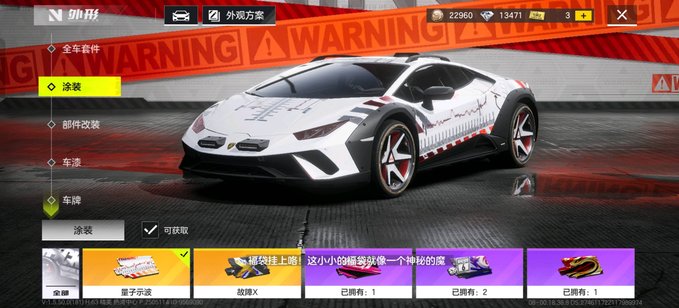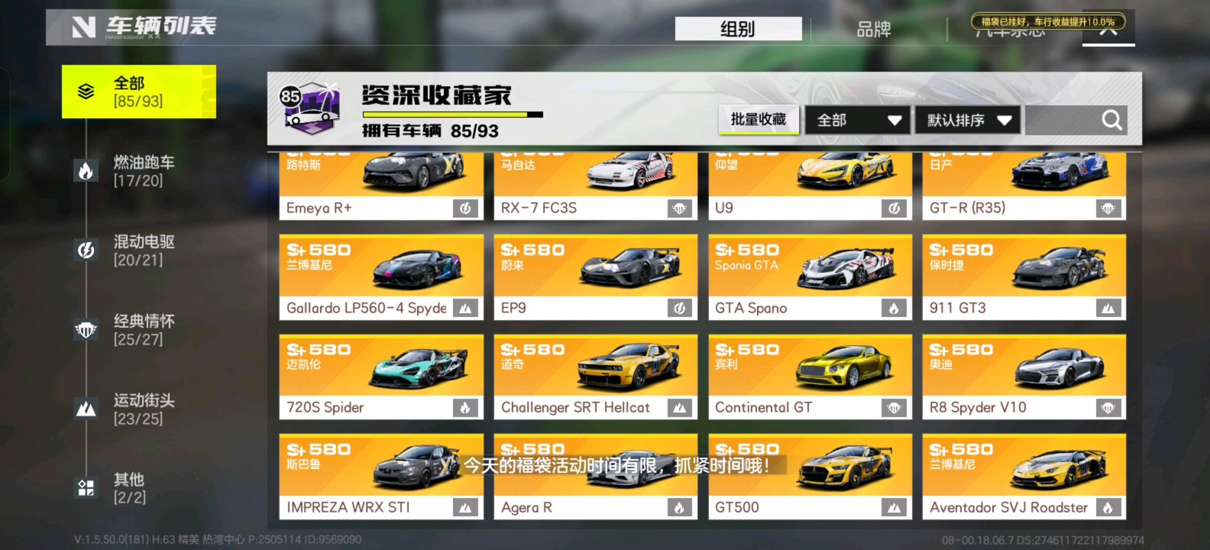 竞速号、热力号---5殿堂满改 兰博基尼第六元素、布加迪威龙、奔驰amg one、兰博基尼野牛、玛莎拉蒂MC12 传奇涂装/故障X、星澜、竹林墨影、量子示波