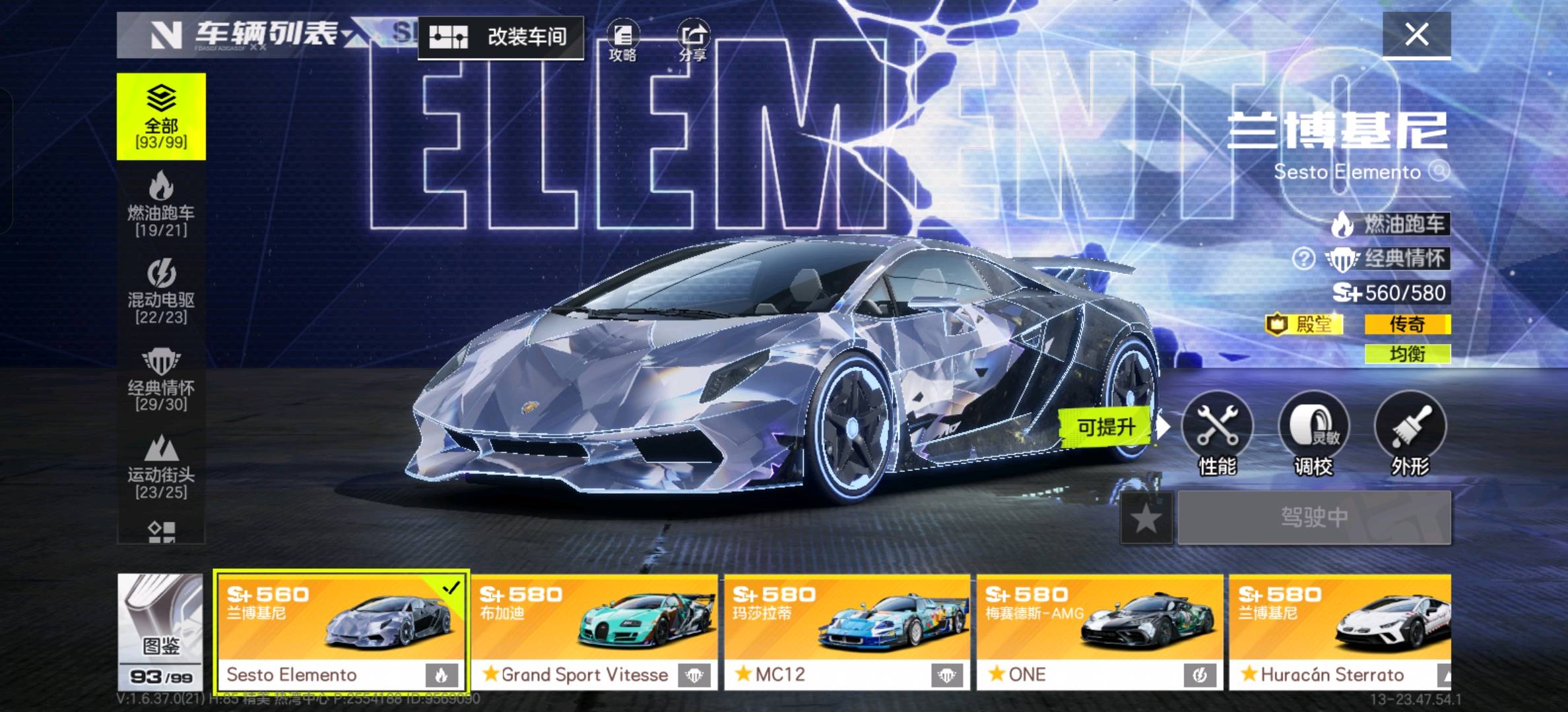 【安卓】 5辆殿堂满改 第六元素 布加迪威龙、奔驰amg one、兰博基尼野牛、玛莎拉蒂mc12 4传奇涂装