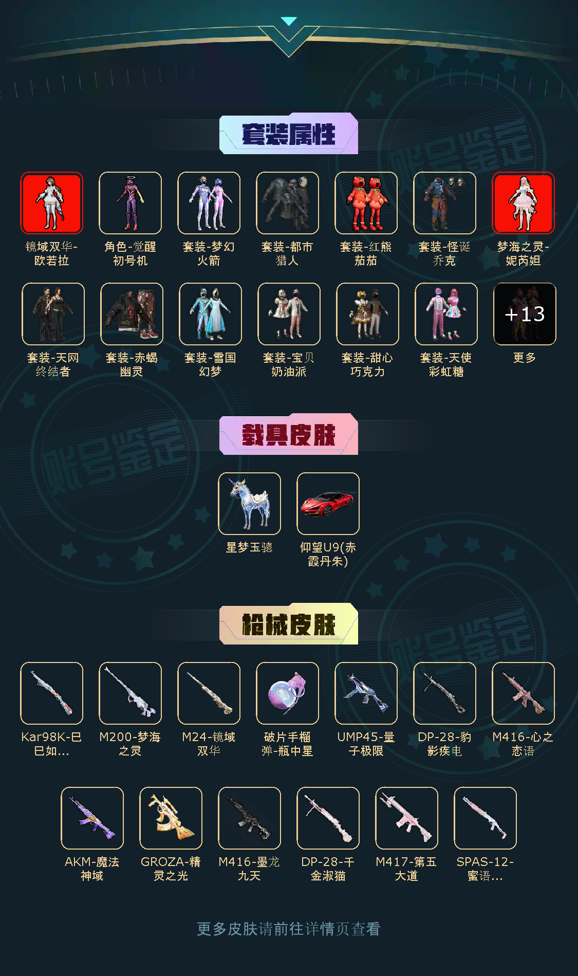 【粉色枪皮】M416-心之恋语/AKM-魔法神域/M416-墨龙九天/GROZA-精灵之光/Kar98K-巳巳如意/M24-镜域双华/M200-梦海之灵/M417-第五大道/UMP45-量子极限/SPAS-12-蜜语绒猫/DP-28-千金淑猫/破片手榴弹-瓶中星球