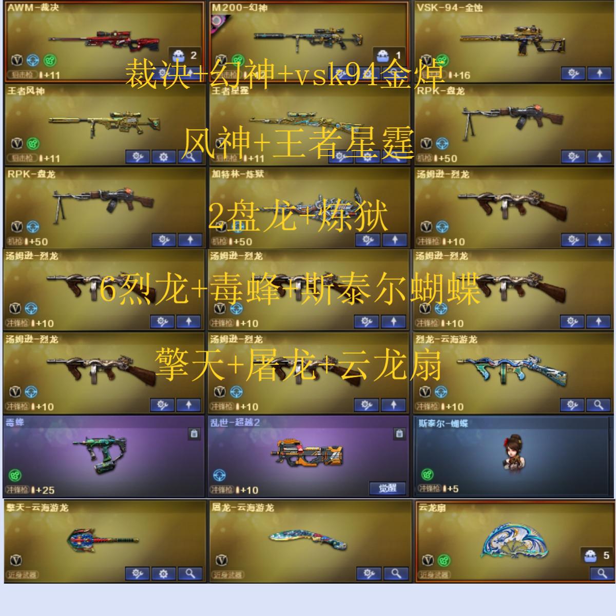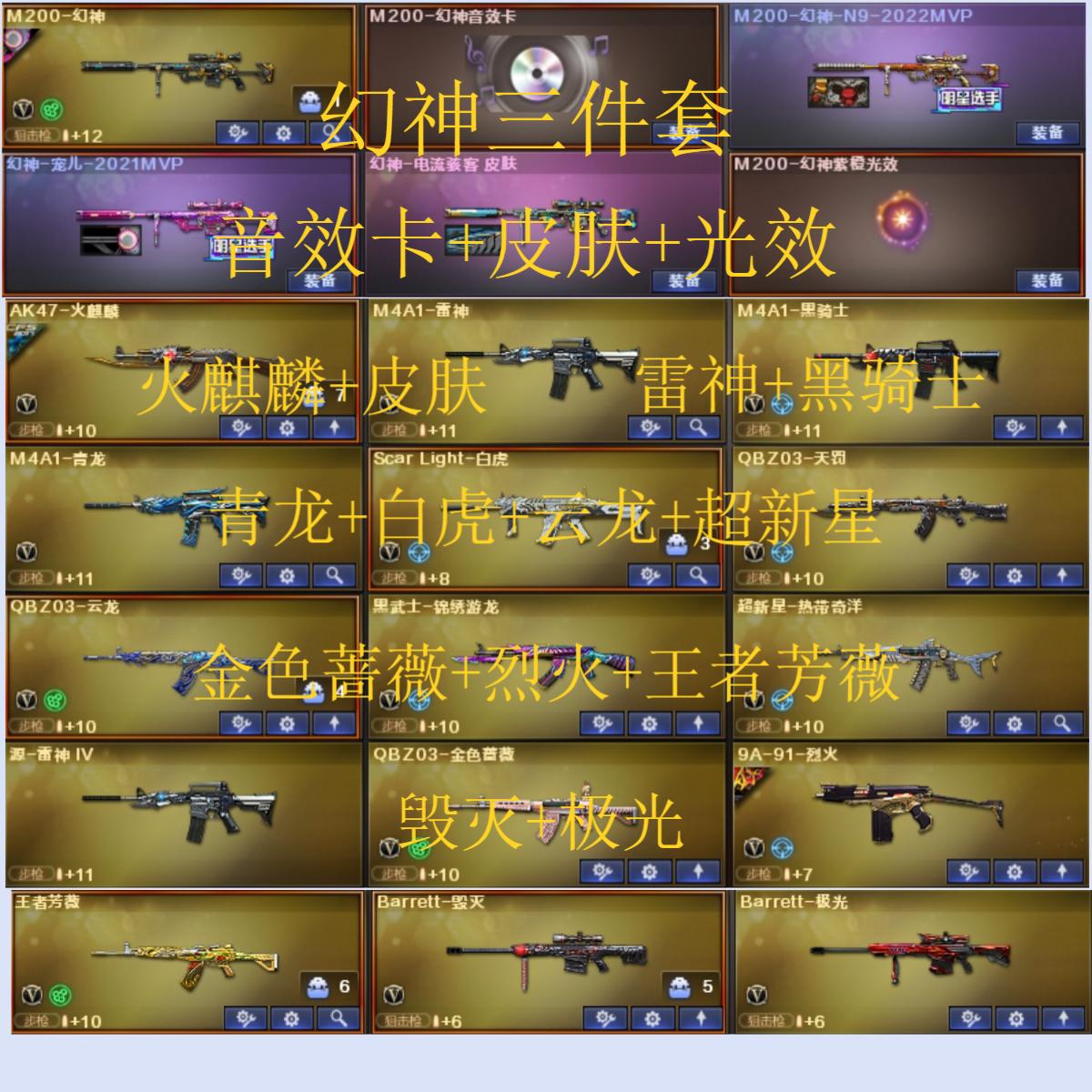 76V7王者1炫金可排位/M200-幻神+幻神-宠儿-2021MVP皮肤+幻神-N9-2022MVP皮肤+幻神-电流骇客皮肤+幻神音效卡+炽芒蝶刃/王者风神觉醒/王者星霆觉醒/VSK-94-金蚀/M4A1-青龙/Scar Light-白虎/QBZ03-天罚/QBZ03云龙套装+COP357云龙3把+1套云龙雷/QBZ03-金色蔷薇/王者芳薇觉醒/USP雷暴+斩神刀雷暴+4套雷暴雷/2盘龙1炼狱6烈龙+毒蜂+斯泰尔蝴蝶/【四防】华/【四防】晴雅/【四防】王者-零-国色天香/【四防】王者-瞳-闭月羞花/【四防】王者潘多拉/【四防】影豹/【四防】岚兮儿/M4A1-雷神音效卡/Barrett-极光音效卡/烈火-熔核/屠龙-星火燎原/白虎-热带奇洋皮肤/擎天-冠军之击/火麒麟-百城/火麒麟-心动糖果/雷神-星空/雷神-维纳斯/雷神-宠儿-2019MVP/火麒麟-CFSTAR/修罗-CFSTAR/白虎-迷你小艾/激光毁灭者3/神圣爆裂者3/王者玉锋觉醒/炫金毁灭/云海玲珑/烟雾保护头盔+闪光护目镜/炫彩背包/全背包+扩展背包/永久防弹衣+永久防弹头盔+永久C4工具钳