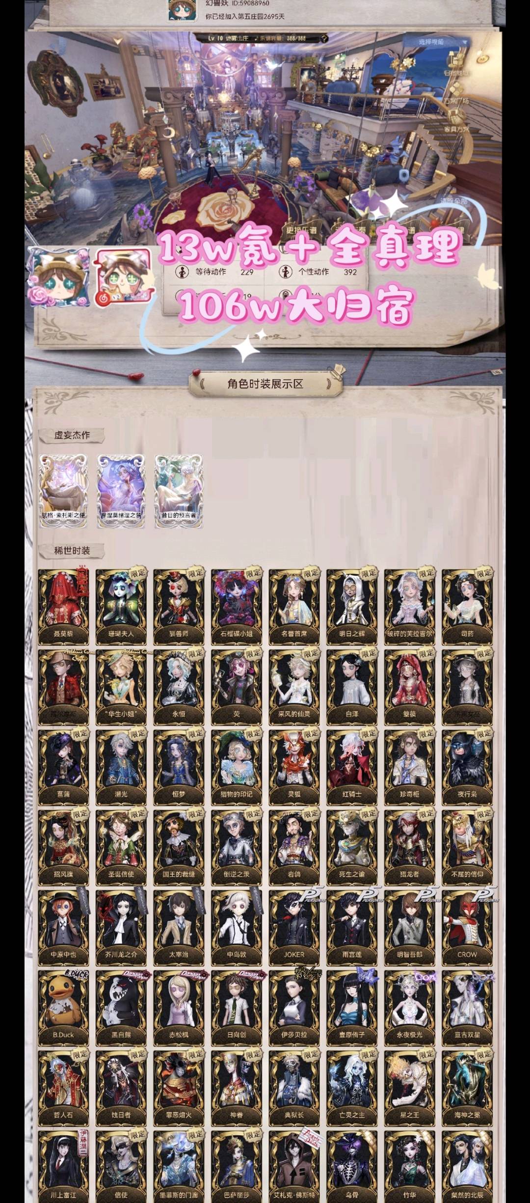【安卓】 【璀璨孤狼】205金13w氪粘土头⭐锁芯 全真理❤金靴 金翼之球⭐船匠 巫医❤珊瑚 明日 驯兽石榴蝶