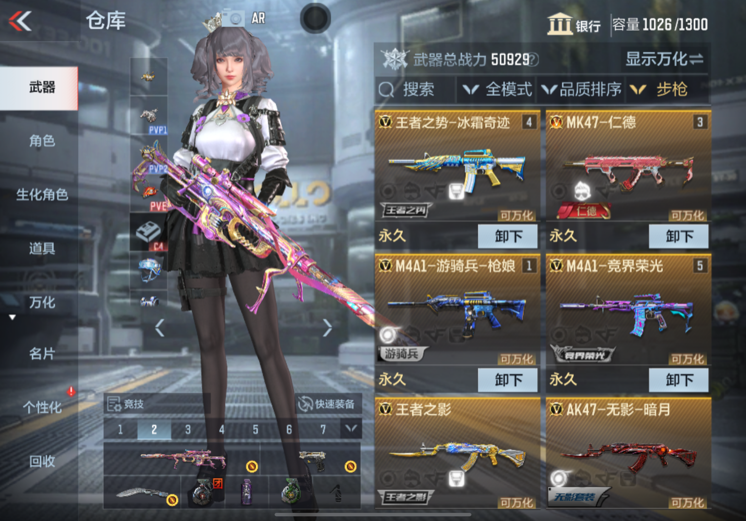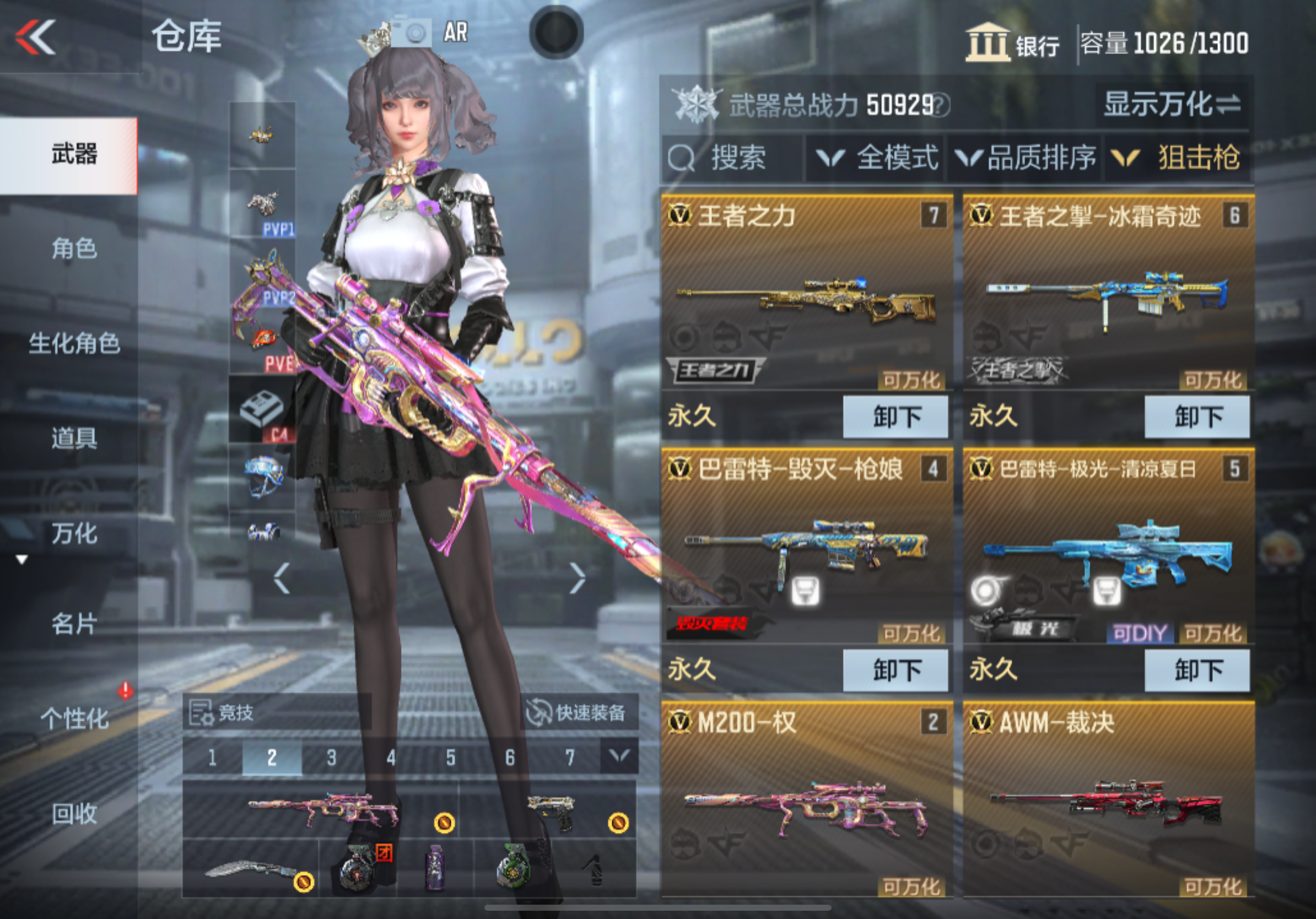 【武器】 王者之影, 王者之心, 王者之势, 王者之力, 王者之掣, 王者之烈, 王者之锋, CZS2仲康, M200权, KSG孟获, M4A1游骑兵, MK47仁德, P90双脊龙, 柯尔特仲达*2, MK23双脊龙, 双管猎枪哈迪斯, 09式狙天神, 98K血月, 98K黑骑士, 9A91天神, 9A91诛仙四剑, A180地狱凤凰, AA12火药觉醒, AA12竞界荣光, AA12雷神, AK12天启, AK47华夏传说, AK47变色龙, AK47天使, AK47幸运日觉醒, AK47无影, AK47星速, AK47木兰, AK47机械迷城, AK47沙漠领主, AK47泰坦破坏者III, AK47火麒麟*4, AK47燎天净火, AK47竞技战魂, AK47角斗士, AK47谜城烟火, AK47雷麒麟, AK47黑武士觉醒, AK47黑鲨, AUG机械纪元, AWM大湾溢彩, AWM天使, AWM天龙, AWM裁决, CBJMS毒蜂, G36竞技战魂, GLOCK18武圣, GLOCK18猎神, GM6战争风云觉醒, HK416极光, HK417朱雀, KSG极光, KSG火力竞放觉醒, M1216血月, M12S枪娘, M14EBR拂影, M14EBR葫芦山庄, M4A1千变, M4A1哈迪斯, M4A1堕天神, M4A1夏清, M4A1太白诗仙, M4A1武圣, M4A1死神, M4A1神工天巧, M4A1竞界荣光, M4A1赛博雷神, M4A1铁胆虎魄,王者之尊、王者81、 M4A1雷神*2, M4A1黑骑士, M4A1黑龙, MAC10孟获, MG3雏凤, MK47鼓龙, MK5极光, Origin12机变奇蛇觉醒, QBZ03天罚, QBZ03枪娘, QBZ03死神, QBZ97浩瀚征途, QCW05变形金刚·大黄蜂, QCW05未来战士, QSZ92冰魂觉醒, RPK赤炎盘龙, SCAR印刷术, SCAR幽暗骑士觉醒, SCAR心动PICK, SCAR探星者, SKS美杜莎, SR25燃烧泰坦, USP仁德, USP仲康, USP太白诗仙*2, USP机械迷城, USP神罚, USP雷暴, VSK94金蚀, 丛林匕首火力竞放, 加特林堡垒觉醒, 加特林炼狱, 加特林蟒蛇, 匕首冰魂觉醒, 匕首浩瀚征途, 双持GLOCK18本初, 双持斯泰尔天使*3, 双持柯尔特极光, 双持沙鹰亚龙, 双持沙鹰元让, 双管猎枪极光盾, 双脊龙趾, 嗜血金鲨, 地狱烈樱·超觉, 地狱烈炎, 太白诗仙扇, 寒霜烈龙*4, 尼泊尔冰锋觉醒, 尼泊尔机械纪元, 尼泊尔雷霆, 屠龙*5, 左轮黑武士觉醒, 巴雷特冬灭觉醒, 巴雷特极光*4, 巴雷特毁灭*4, 战斧无影, 手斧竞技战魂, 天神, 擎天觉醒, 斩魔剑天使, 暗杀神, 末日裁决觉醒, 柯尔特伏刹山海觉醒, 樱龙刺·超觉, 毁灭征服者超越Max, 毛瑟毒蜂, 气勇胆烈戟, 沙鹰修罗, 沙鹰天神, 沙鹰宇航兔兔, 沙鹰幻兽, 沙鹰无影, 沙鹰飞电, 清刚觉醒, 激光毁灭者III, 烈焰刀, 烈焰弓, 电锯毒蜂, 破邪蛇棍觉醒, 神罚战斧, 秋逸觉醒, 耀金雷刃, 蛮神巨斧, 蝴蝶刀天神, 蝴蝶刀极光, 血月*3, 雌雄双股剑, 马来剑毁灭, 马来剑耀金伯爵, 麒麟刺*2, 龙啸, 龙鳞觉醒 【投掷】 投掷手雷云海游龙*2, 投掷闪光弹神工天巧, 投掷烟雾弹神工天巧, 投掷高爆手雷神工天巧, 投掷黑骑士烟雾弹, 投掷黑骑士闪光弹, 投掷黑骑士手雷*2, 投掷幻兽烟雾弹*2, 投掷幻兽闪光弹, 投掷幻兽手雷*3, 投掷烟雾弹游骑兵, 投掷闪光弹游骑兵, 投掷燃烧弹游骑兵*3, 投掷黑武士烟雾弹*3, 投掷黑武士闪光弹*3, 投掷黑武士手雷*3, 投掷火麒麟闪光弹, 投掷火麒麟烟雾弹, 投掷火麒麟手雷, 投掷死神烟雾弹, 投掷手雷游骑兵, 投掷手雷遁天梭钻山锥 【皮肤】 王者之魂白金血钻, 王者之掣冰霜奇迹, 王者之势冰霜奇迹, M4A1游骑兵枪娘, 巴雷特毁灭枪娘, AK47火麒麟枪娘, AK47火麒麟雷掣战翼, 双持斯泰尔天使血翼*2, M4A1雷神时空幻境, AK47黑武士觉醒渊龙, 火麒麟烟雾弹暗月, 火麒麟闪光弹暗月, 黑骑士手雷能量核心, 火麒麟手雷寒霜, 擎天觉醒能量核心, 龙啸RGB骇客, 战斧无影暗月, 蝴蝶刀极光清凉夏日, 双持柯尔特极光清凉夏日, 柯尔特伏刹山海觉醒千变*2, 改装GLOCK黑龙能量核心, 沙鹰无影不屈老兵, 沙鹰修罗不屈老兵*3, Origin12机变奇蛇觉醒千变*2, 巴雷特毁灭星空*3, 巴雷特极光能量核心, AWM天龙秘银, QBZ191金甲虎啸觉醒千变, M14EBR拂影银闪, M4A1死神机甲核心, M4A1千变随变*2, M4A1竞界荣光蜂鸟, M4A1黑骑士现代金属, M4A1雷神星空, M4A1黑龙苏城钰, AK47星速纸片, AK47华夏传说起源, AK47火麒麟白虎*2, AK47无影汗血之征, 巴雷特极光重型机甲*3, 81式光明之神三足金乌, AK47黑武士觉醒金属蜂巢*2, 黑骑士烟雾弹能量核心, 火麒麟烟雾弹钰, 死神闪光弹暗月, 死神手雷暗月, 燃烧弹游骑兵紫魇, 火麒麟手雷钰, 丛林匕首死神能量核心, 擎天觉醒现代金属*2, 擎天觉醒蜂鸟, 黑龙刺能量核心, 屠龙星空, 屠龙英雄战甲*2, 屠龙魔神*2, 灵魂忍者冥河双刃, 左轮竞界荣光蜂鸟, 沙鹰修罗现代金属, 沙鹰火麒麟寒霜, 沙鹰火麒麟钰*2, MG36黑骑士能量核心, 巴雷特毁灭RGB骇客, 巴雷特极光不屈老兵, 巴雷特极光清凉夏日, 巴雷特毁灭暗月, M4A1黑龙墨子, M4A1黑骑士不屈老兵, M4A1黑骑士白马银枪*2, M4A1雷神RGB骇客, M4A1死神不屈老兵, M4A1黑骑士能量核心, M4A1黑龙暗月, M4A1雷神千变*2, M4A1黑骑士瑞兽, AK47无影RGB骇客, AK47无影暗月, AK47雷麒麟火锅, AK47竞技战魂瑞财, AK47无影不屈老兵, AK47幸运日觉醒千变, AK47火麒麟能量核心 【角色】 角色樱, 角色进阶零新生, 角色觉醒炽天使X, 角色妩媚妖姬, 角色关小雨, 角色瞳, 角色葵, 角色觉醒幽灵刀锋觉醒 【音效卡】 气勇胆烈戟古代战场*1, 巴雷特极光现代战场*1, AK47火麒麟现代战场*1, 巴雷特毁灭现代战场*2, AK47火麒麟电音*1 【消灭音效】 消灭音效炎龙铠甲*1, 消灭音效能量核心*1, 消灭音效赏金猎人*1, 消灭音效斩杀*1 【狙击枪线】 AWM裁决流光之线, 狙击枪线黑化