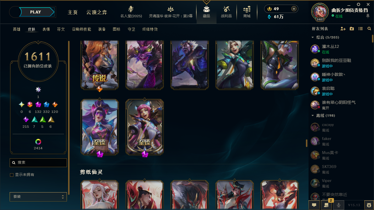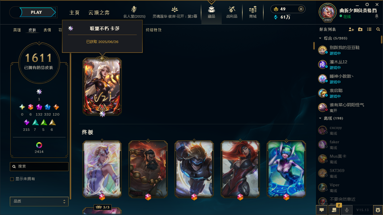 ██ 4100皮丨1700原皮丨签名联盟不朽卡莎丨140神话丨IG莲华神龙福牛幻灵龙瞎斩星穿星EDG
