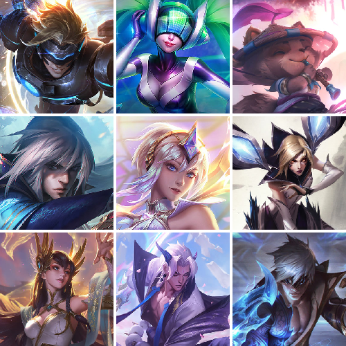 【重要头像】爱情之歌 心型钥匙 觅心游侠卢锡安 雪花 神龙尊者艾希 救生圈 KDA卡莎 KDA阿卡丽 KDA阿卡丽炫彩 KDA阿狸 KDA阿狸炫彩 KDA伊芙琳 KDA伊芙琳炫彩 灵魂莲华阿狸 灵魂莲华莉莉娅 灵魂莲华卡西奥佩娅 冠军蔷薇乐芙兰 西部天使艾瑞莉娅 征服者韦鲁斯炫金 至臻战斗学院蕾欧娜 至臻星之守护者索拉卡 至臻KDA卡莎 至臻灵魂莲华提莫 至臻奥术师佐伊 至臻魔女婕拉