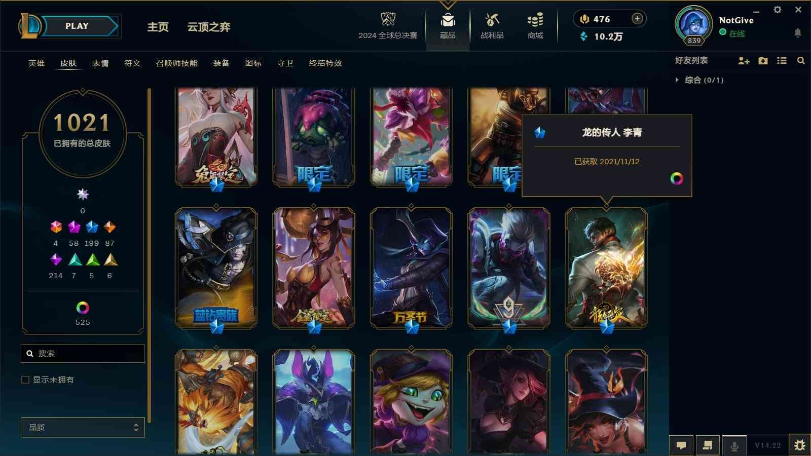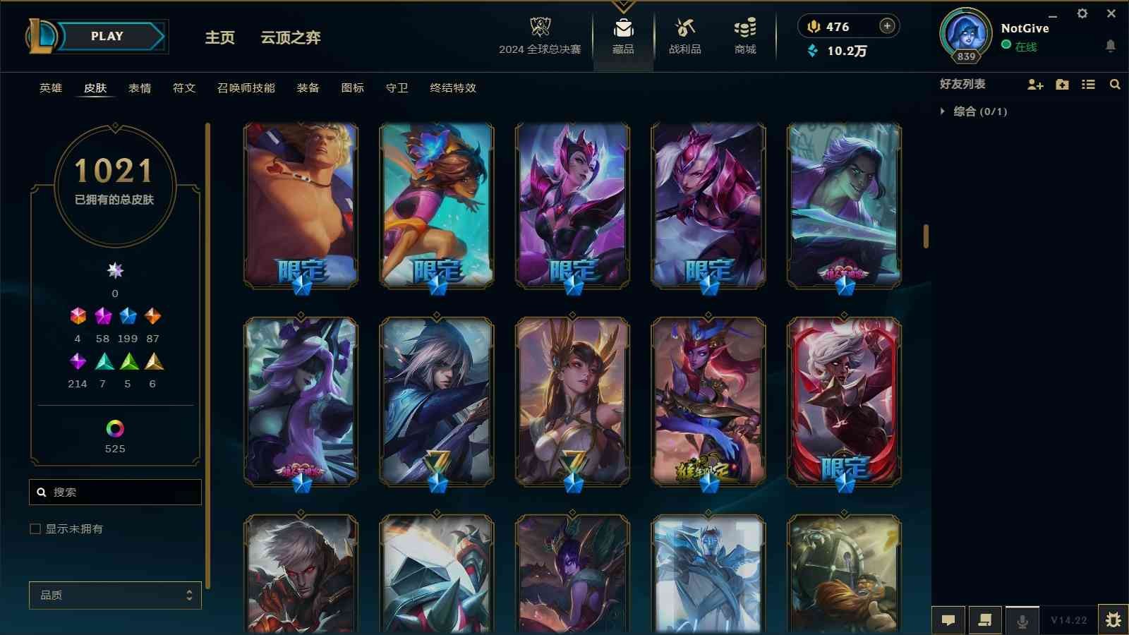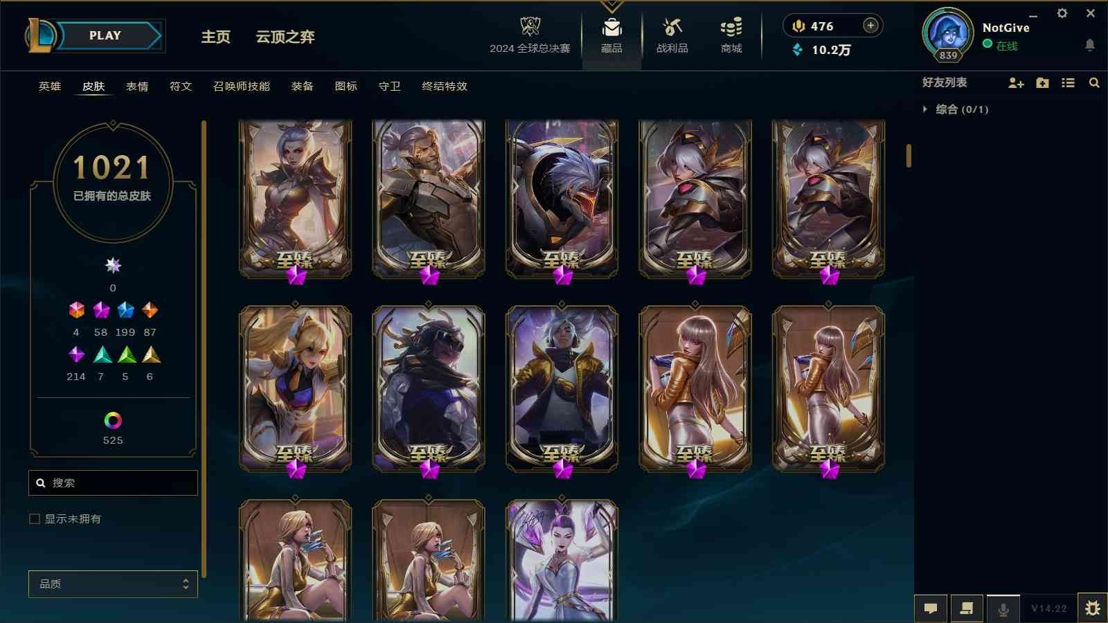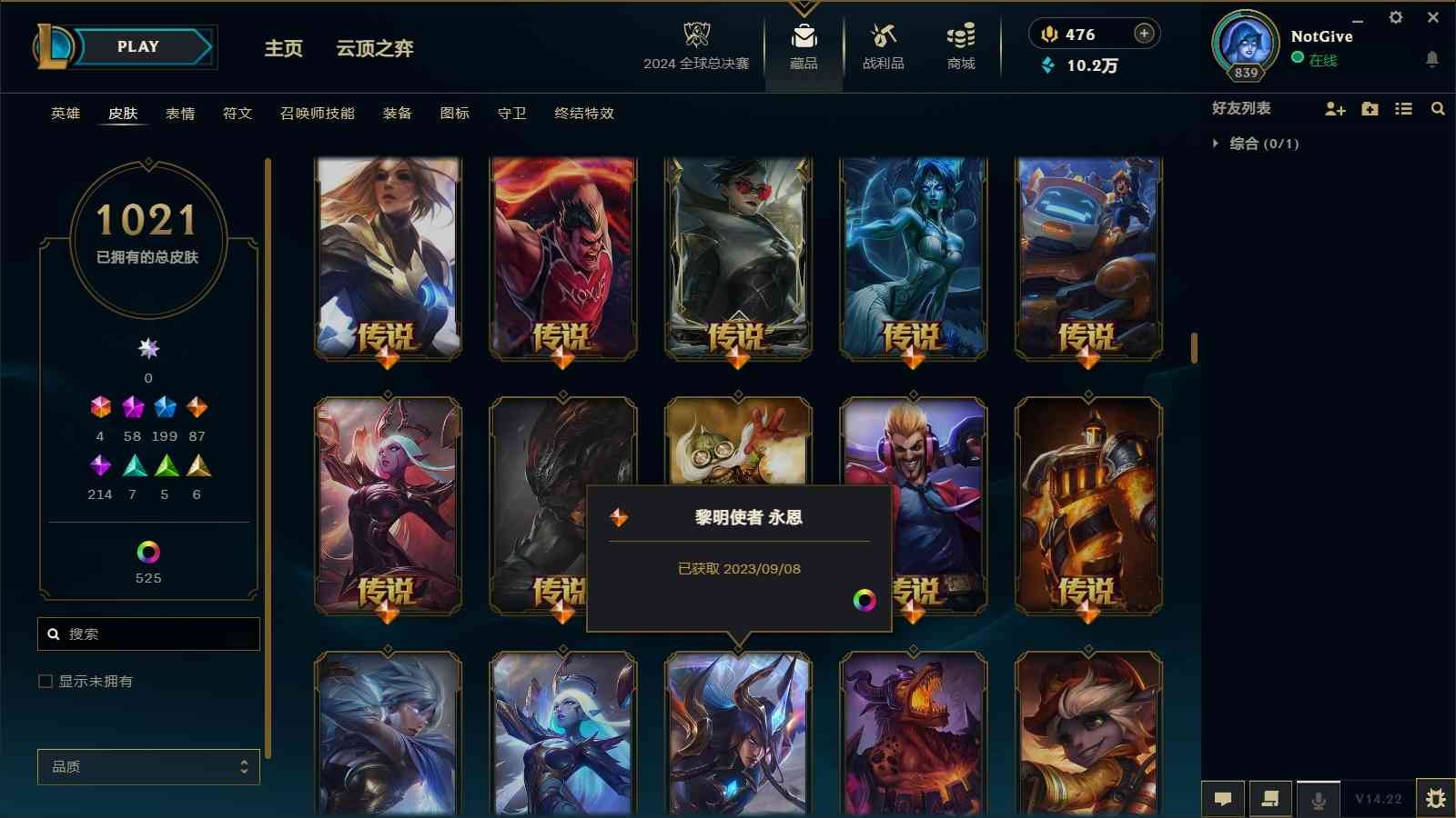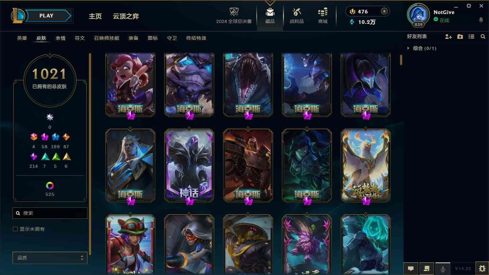1800皮肤〓59至臻海克斯〓摄魂龙瞎〓冰狙哥特〓玉剑男女刀〓神龙亚索黑夜黎明〓沄顶3神话