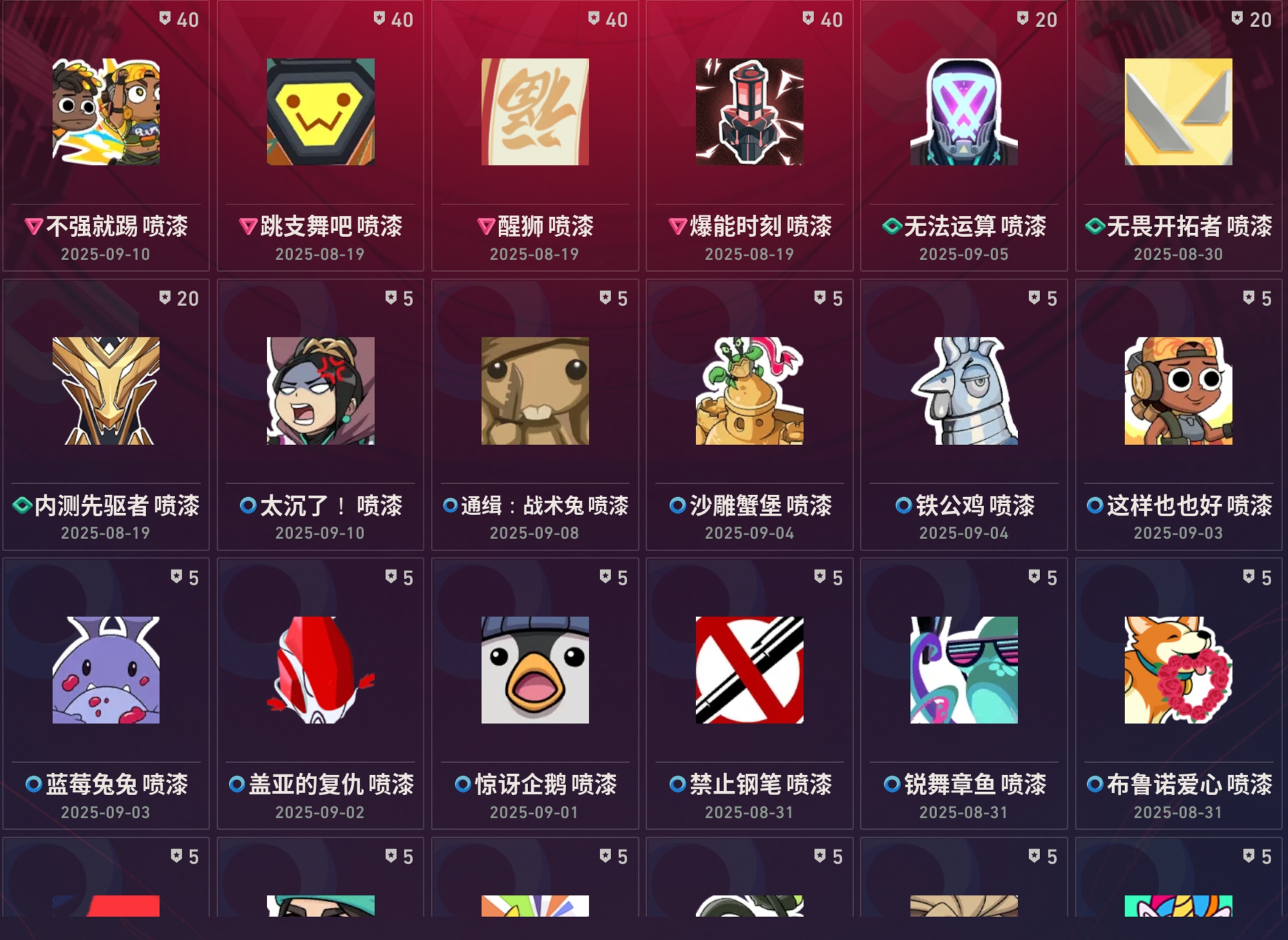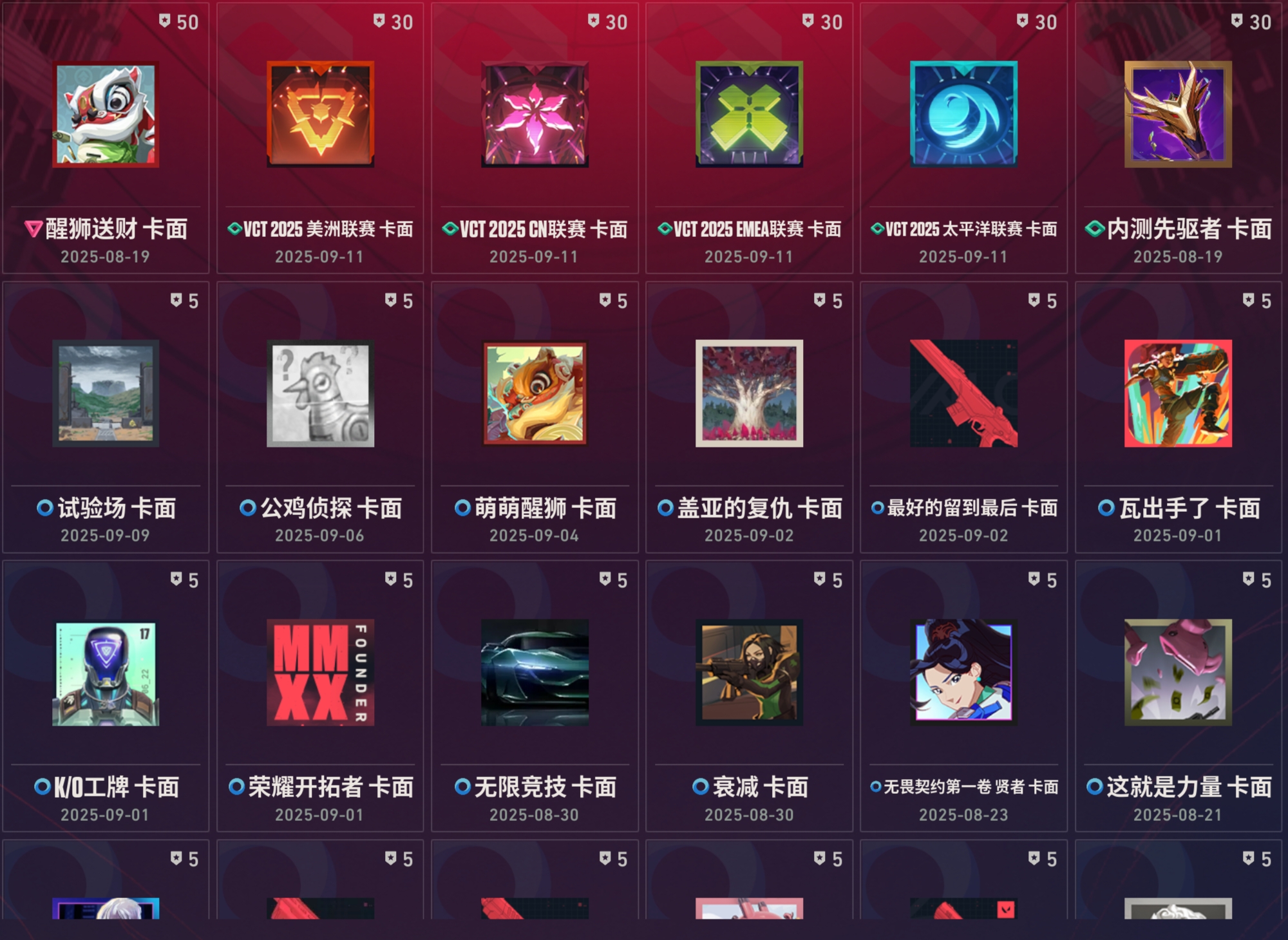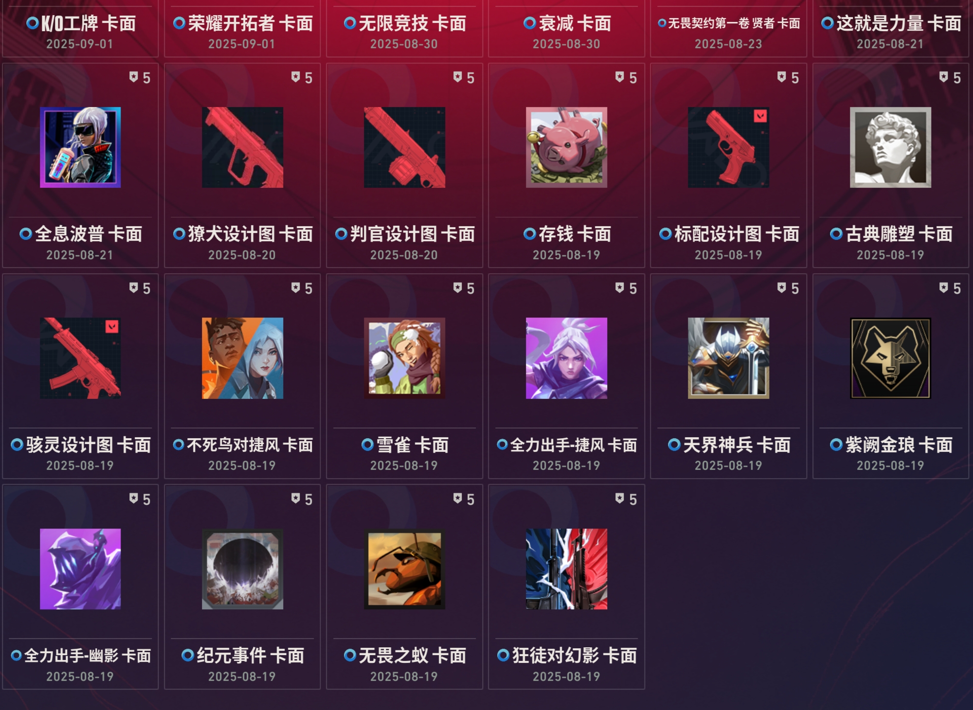 近战武器:vct2025爪刀满级全炫彩(vct爪刀)/狂沙之拥2级天穹/起源环刃2级/紫金爪刀2级/澄湖涟滟2级鱼扇/沧澜戟2级深蓝/偃月2级/推进模式前进四2级银蓝/堕天遗武仪式匕首2级/个人近战单位满级/离子武器能量剑2级/盖亚之怒2级蓝色/全息匕首2级/醒神破2级全炫彩/天玄刀2级/侦察力量蝴蝶刀2级全炫彩(侦察蝴蝶刀)/金琅斧2级/再见安打2级/巨神铁甲短剑