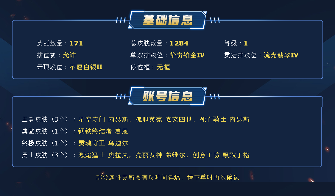 ~~喜欢记得收藏~~可排位~~1274皮全英雄~~租之前尽量查一下游戏ID,确保段位是您需要的,避免浪费您的时间~~请勿挂机逃跑故意送人头,谢谢合作,谢谢~~