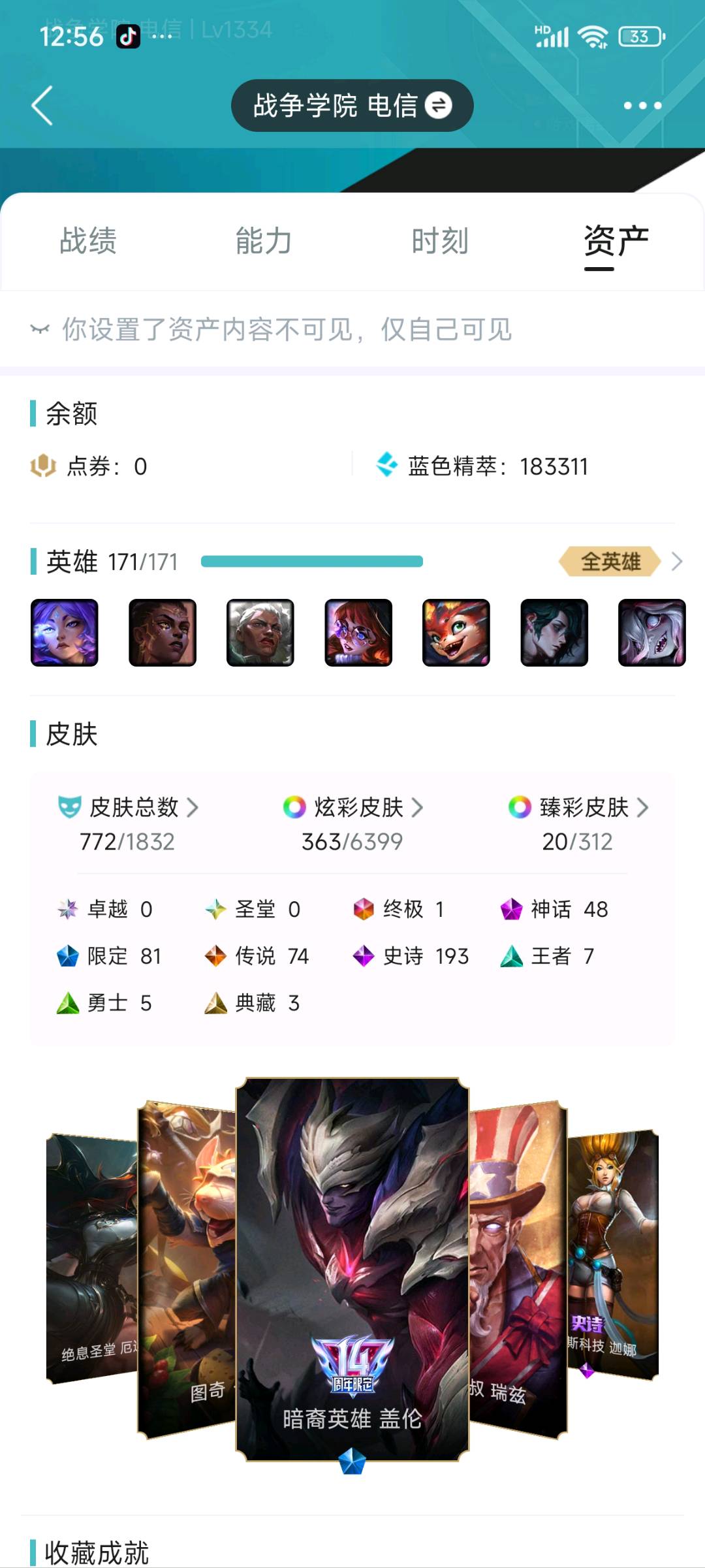 1135皮,精品自玩号,48神话,注意是战争学院,别登错区了