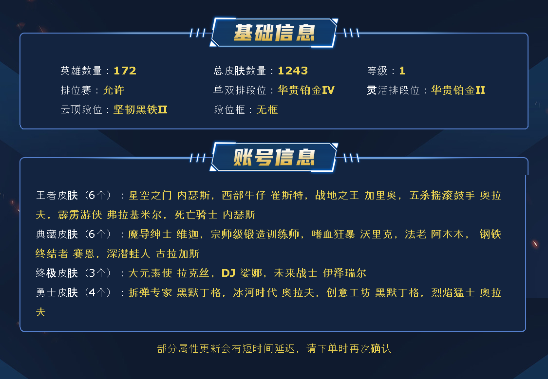 ~~喜欢记得收藏~~可排位~~1229皮全英雄丨907原皮322炫彩~~租之前尽量查一下游戏ID,确保段位是您需要的,避免浪费您的时间~~请勿挂机逃跑故意送人头,谢谢合作,谢谢~~