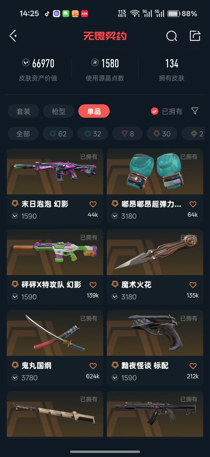 【当前段位:黄金III】可排位✅7w库1580R点✅电工钳✅超时空、混沌狂徒✅滋滋X特工队✅25vct爪刀