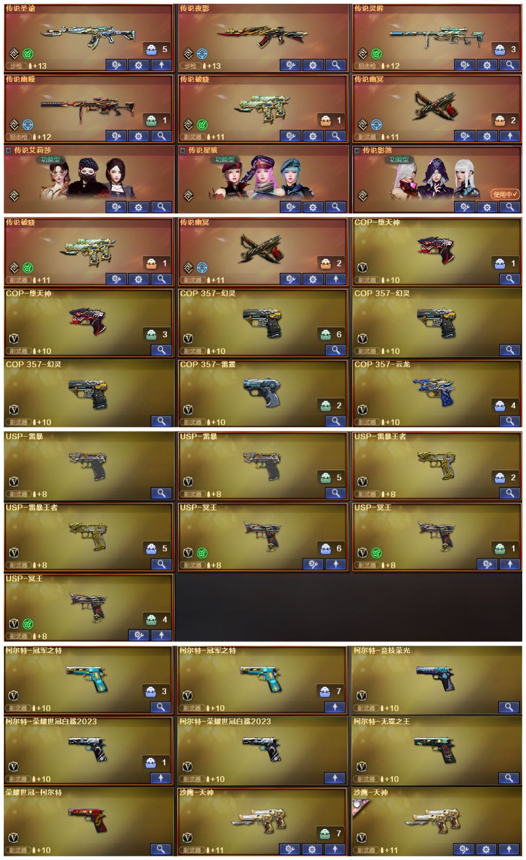 7COP+2USP雷暴+2USP雷暴王者+3USP冥王+2冠军之特+2柯尔特白鲨+柯尔特无冕之王