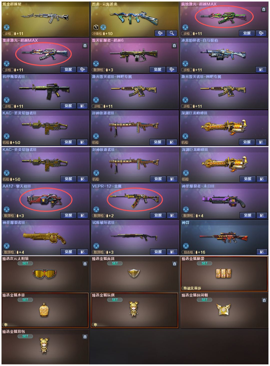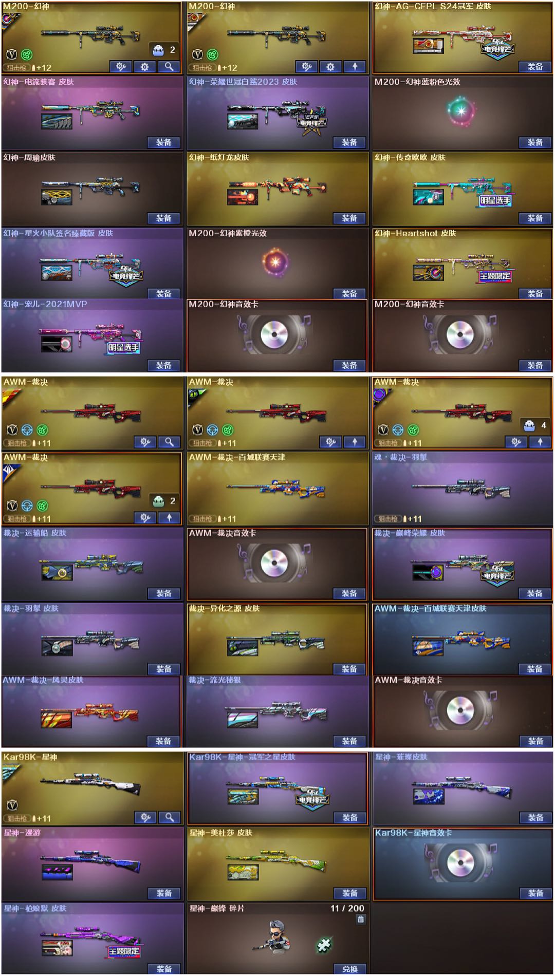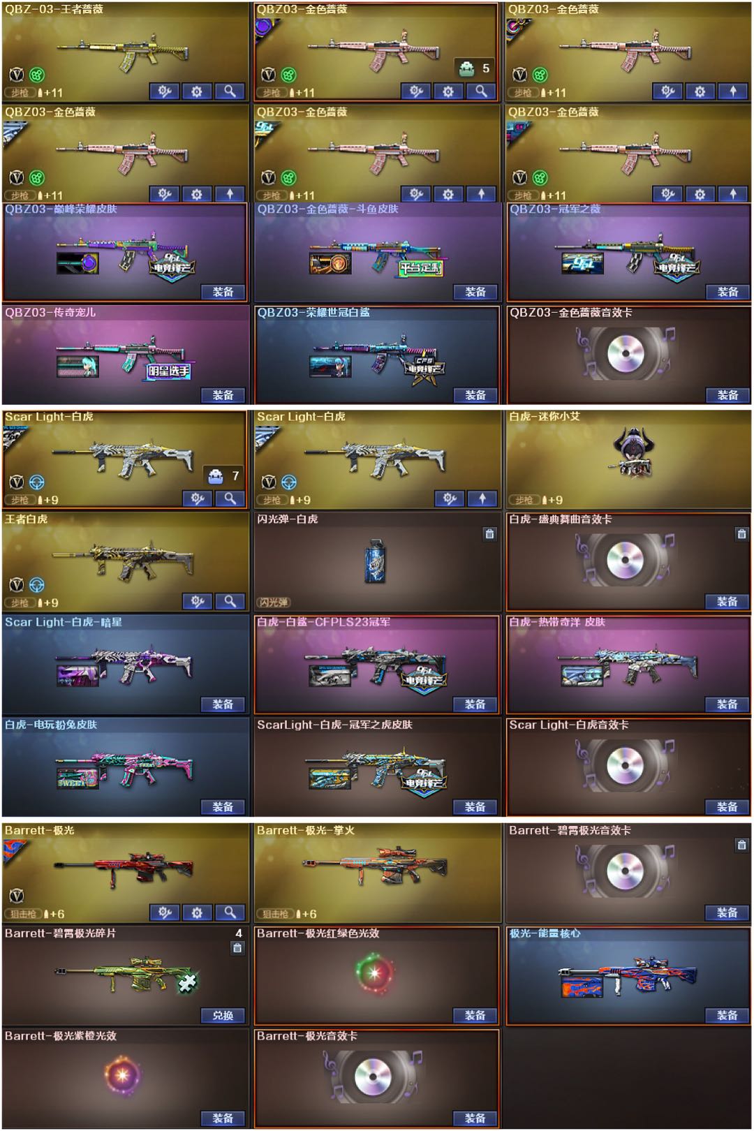 幻神三件套+裁决三件套+星神三件套+极光三件套+毁灭三件套+qbz三件套+白虎三件套+黑骑士三件套+黑龙三件套+火麒麟三件套+雷神三件套