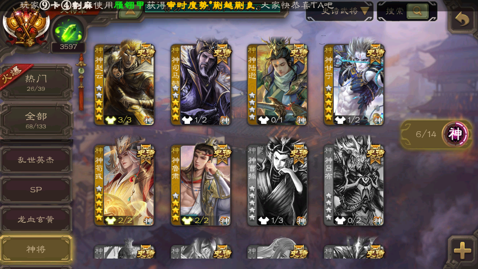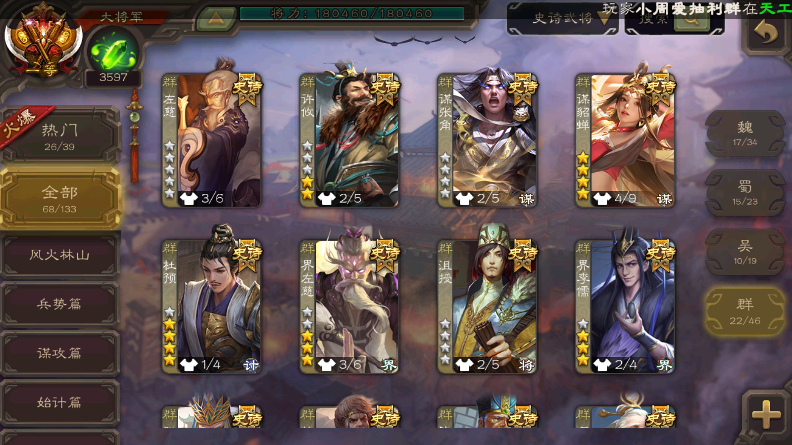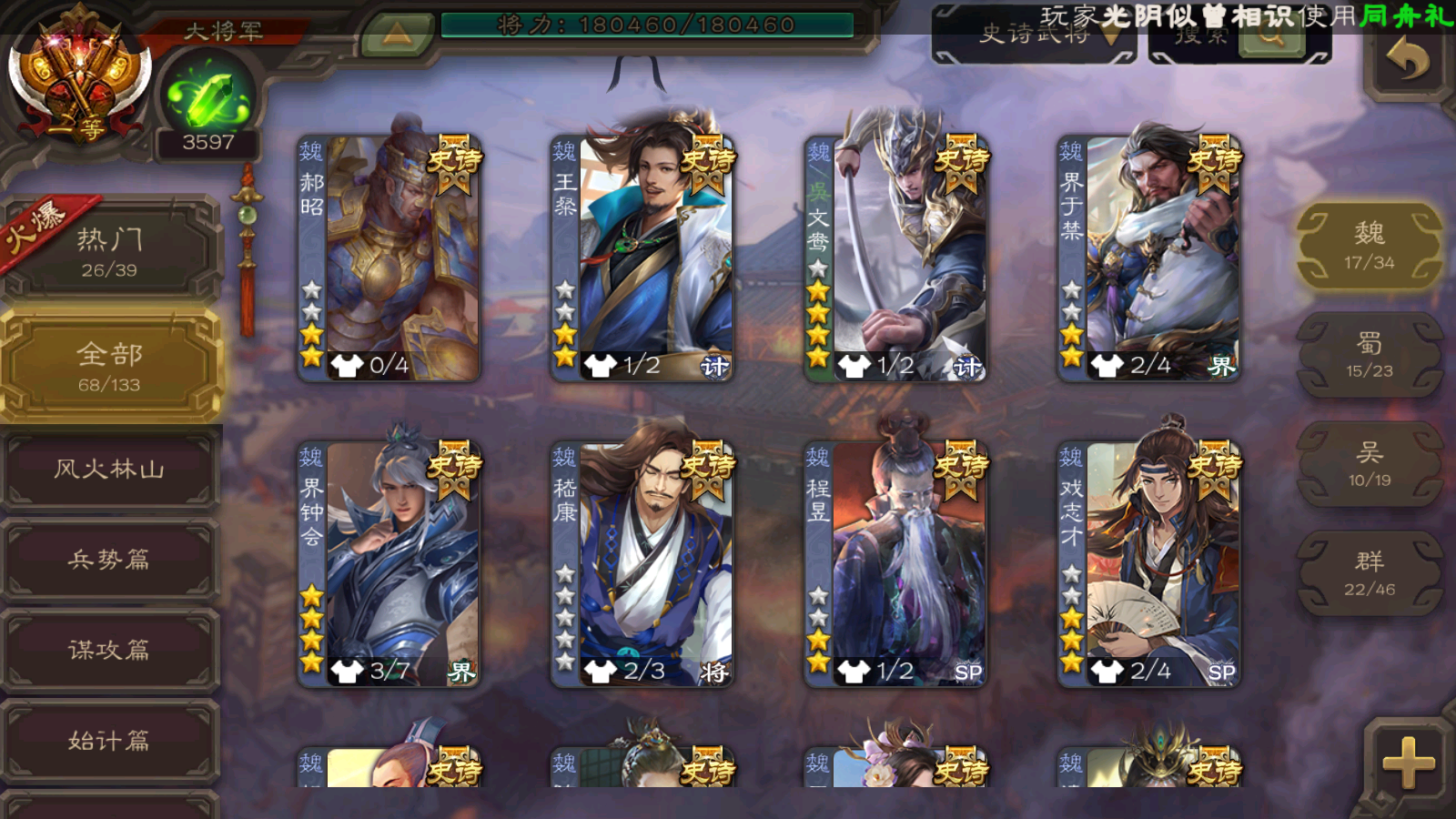 【全平台】 【有卡】三卡大将军势魏延/动刘焉神荀彧神司马懿文鸯钟会神甘/谋友诸葛十常侍势太史慈曹髦/动杜预杨彪