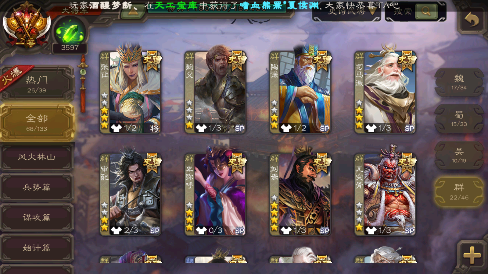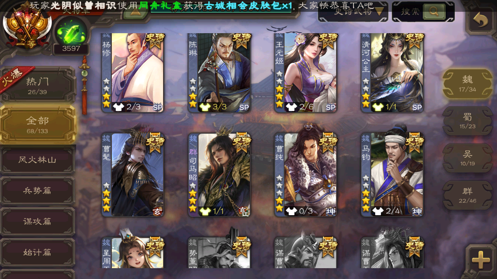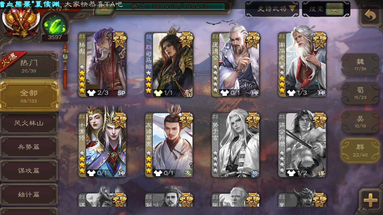【全平台】 【有卡】三卡大将军势魏延/动刘焉神荀彧神司马懿文鸯钟会神甘/谋友诸葛十常侍势太史慈曹髦/动杜预杨彪