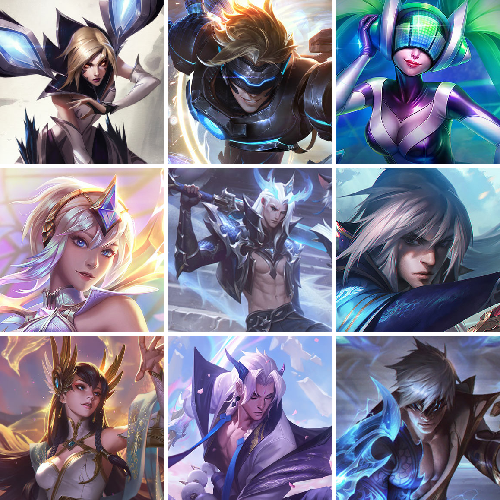【重要皮肤】青花瓷丽桑卓至臻 北极星使者沃里克至臻 灵魂莲华易至臻 海之歌萨勒芬妮至臻 幻灵战斗猫金克丝至臻 青花瓷拉克丝至臻 神凰行者烈羽焰凰霞至臻 魅惑女巫莫甘娜至臻 魔女婕拉至臻 真实伤害赛娜至臻 灵魂莲华提莫至臻 灵能特工伊泽瑞尔至臻 暗星墨菲特至臻 黑夜使者凯隐至臻 神龙尊者均衡之龙沃利贝尔至臻 征服者贾克斯至臻 星之守护者妮蔻至臻 星之守护者妮蔻2022至臻 未来战士锤石至臻 灰烬骑士莫德凯撒 灰烬骑士派克 海克斯科技安妮 海克斯科技雷克顿 海克斯科技克格莫 海克斯科技吉格斯 海克斯科技阿利斯塔 海克斯科技阿木木 海克斯科技拉莫斯 永恒之森奥恩 黎明使者卡尔玛 恐惧新星德莱厄斯 零之枪骑赫卡里姆 摄魂使者薇恩 胜利剑圣易 胜利女神娑娜 胜利之王泰达米尔 胜利巨口克格莫 生化领主泰达米尔 荣誉使者玛尔扎哈 养蜂人辛吉德 勇敢的心德莱厄斯 电玩女神厄运小姐 电玩勇者锐雯 电玩女神阿狸 星之守护者伊泽瑞尔 玉剑传说无影 玉剑传说舞剑仙 星之守护者佐伊 银龙裁决泰隆 虎头虎脑崔丝塔娜 烈焰仙子黛安娜 龙腾虎跃瑟提 猛虎下山赵信 招财进宝提莫 替父从军花木兰 神龙烈焰金克丝 古琴余韵娑娜 春晖神女拉克丝 你看见过我的熊猫吗安妮 北辰之威内瑟斯 美猴王孙悟空 玉净夜叉凯特琳 紫金罗刹莫甘娜 广寒仙子嫦娥 虎痴之拳蔚 司马懿仲达 金猪烈焰瑟庄妮 烈焰美人薇恩 纳财大帝塔姆 神龙之翼库奇 王国机神青龙德莱文 王国机神朱雀蕾欧娜 王国机神苍狼瑟提 王国机神白虎贾克斯 王国机神玄武盖伦 福牛守护者安妮 福牛守护者厄斐琉斯 福牛守护者德莱厄斯 福牛守护者阿利斯塔 福牛守护者嘉文四世 福牛守护者菲奥娜 胜利枪神卢锡安 胜利之剑亚托克斯 甜心宝贝娑娜 觅心魔灵奥莉安娜 觅心之翼奎因 冰雪风暴希维尔 冬季仙境卡尔玛 魄罗骑士瑟庄妮 夺命美人卡特琳娜 平安夜女神娑娜 圣诞糖果棒厄运小姐 大魔法锅布里茨 大魔王提莫 死亡誓约维克托 灵魂收割者索拉卡 南瓜头王子阿木木 勇敢的心德莱厄斯 泳池派对凯特琳 泳池派对佐伊 泳池派对格雷福斯 泳池派对李青 泳池派对雷克顿 电玩战魂赫卡里姆 送披萨的小姐姐希维尔 鸡里奥 克格汪 EDG厄斐琉斯 EDG佛耶戈 EDG格雷福斯 EDG悠米 EDG佐伊 iG卡蜜尔 iG洛 iG卡莎 iG艾瑞莉娅 iG乐芙兰 iG菲奥娜 SKTT1烬 SKTT1辛德拉 SKTT1阿利斯塔 SKTT1阿兹尔 SKTT1伊莉丝 SSW锤石 SSW泰隆 SSW图奇 SSW辛吉德 SKTT1贾克斯 SKTT1婕拉 SKTT1薇恩 暗杀星奥莉安娜 暗杀星蒙多 暗杀星努努和威朗普 暗杀星慎 Fnatic库奇 Fnatic卡尔萨斯 冰雪节辛吉德 防暴机器人布里茨 防暴士兵辛吉德 防暴天使凯尔 钢铁之翼艾尼维亚 冠军典狱长锤石 冠军掠夺者卡兹克 冠军蔷薇乐芙兰 冠军之矛卡莉丝塔 冠军之刃锐雯2016 冠军之血希瓦娜 胡桃夹子萨科 惊悚派对阿木木 警用试作体K9内瑟斯 蒙多蒙多 密林猎手提莫 南瓜头费德提克 女猎手希维尔 破空枪骑孙悟空 圣诞精灵崔丝塔娜 圣诞开心鬼提莫 圣诞狂欢努努和威朗普 圣诞老人古拉加斯 圣诞玩偶波比 圣诞驯鹿克格莫 糖果使徒费德提克 无头骑士赫卡里姆 喜庆之树茂凯 邪恶圣诞老人维迦 幸福女神乐芙兰 雪默丁格 雪装奈德丽 野兽猎人德莱文 英勇玩具兵普朗克 永恒之森乐芙兰 征服者卡尔玛 征服者韦鲁斯 暗影沃里克 冠军之箭艾希 机械迷城加里奥 诺斯费拉图弗拉基米尔 阿木木主人不要我了 波比的巧克力工坊 都铎王朝图奇 十五周年纪念希维尔 十周年纪念安妮 源代码乐芙兰 DJ娑娜 大元素使拉克丝 灵魂守卫乌迪尔 未来战士伊泽瑞尔
