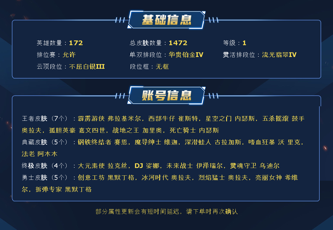 ~~喜欢记得收藏~~可排位~~1500皮全英雄~~租之前尽量查一下游戏ID,确保段位是您需要的,避免浪费您的时间~~请勿挂机逃跑故意送人头,谢谢合作,谢谢~~