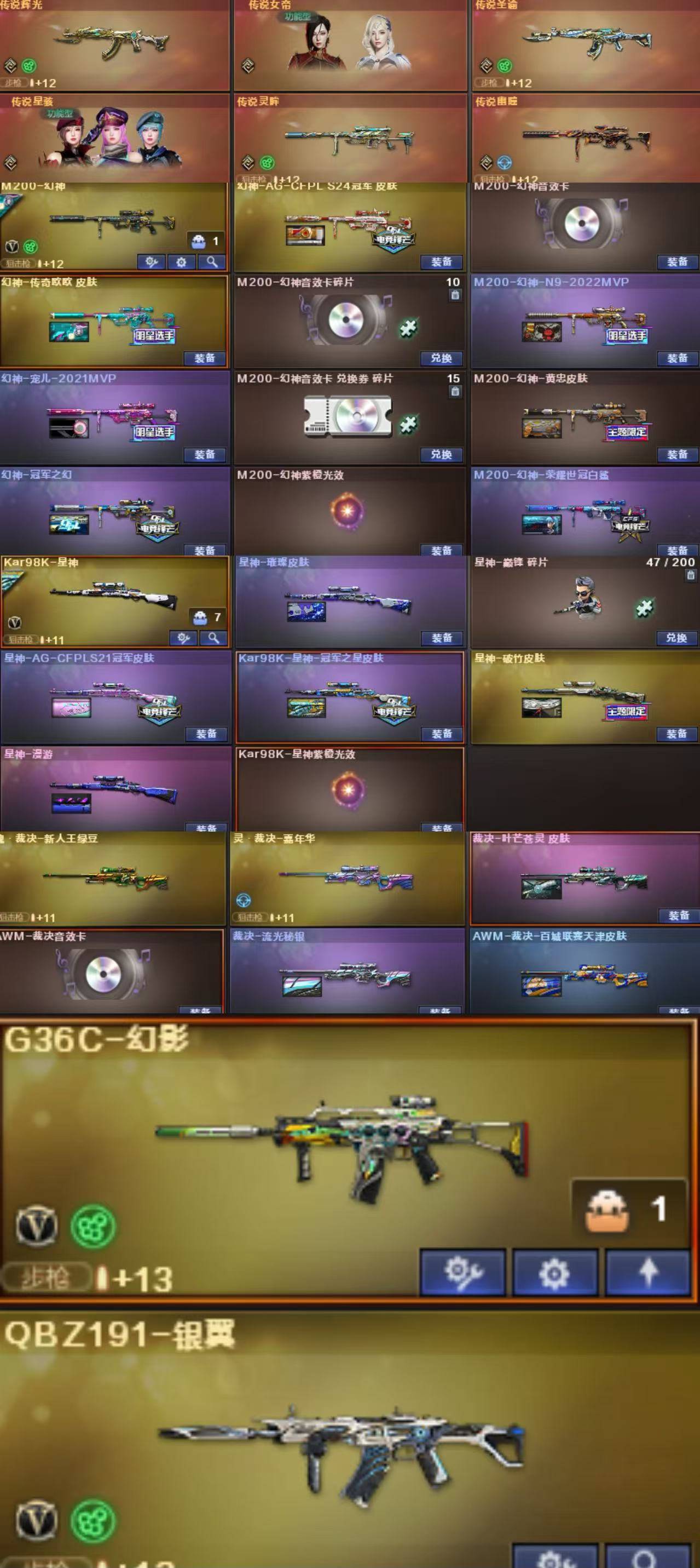 【南部】150v传说女帝+幽瞳+圣瑜/星骇⭐幻神欧欧7皮三件套⭐裁决三件套⭐G36c幻影六列六盘双全