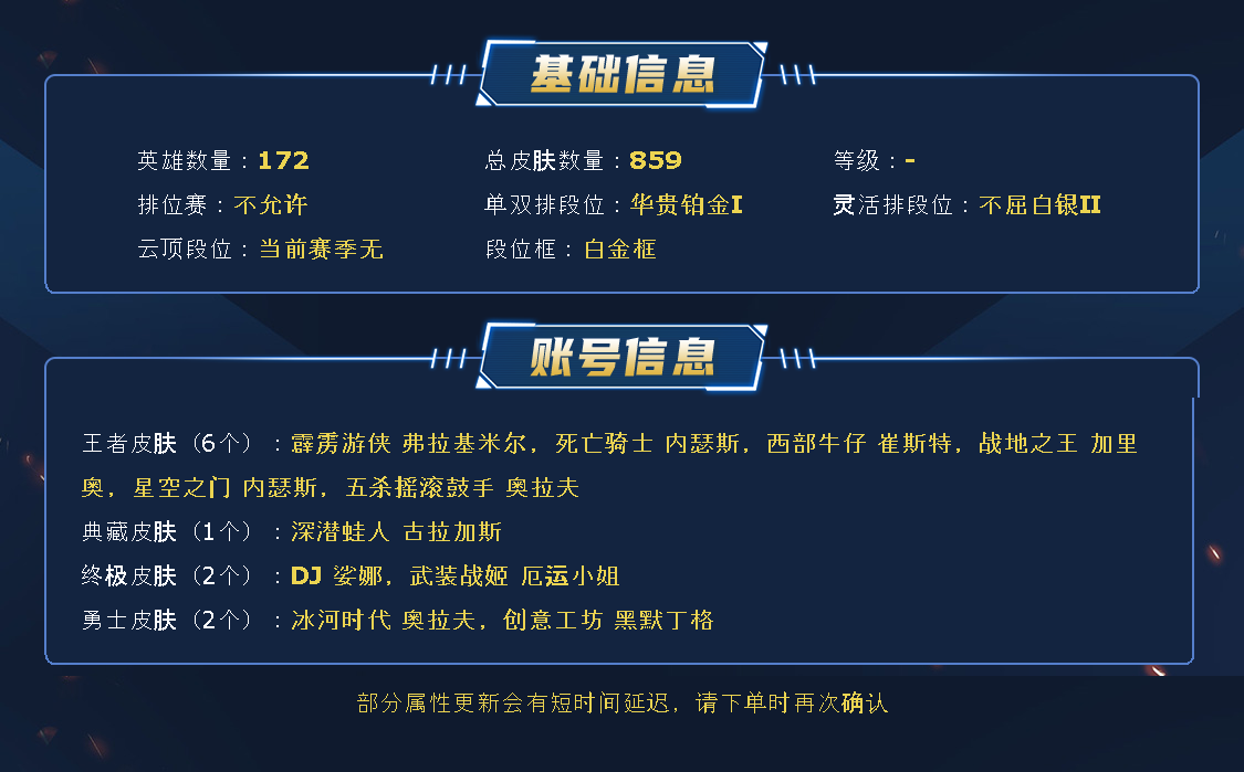 允许排位 -【德玛西亚】殿堂阿狸|殿堂卡莎|圣堂腕豪|殿堂薇恩+妖姬|海魔至尊|三款全球总决赛