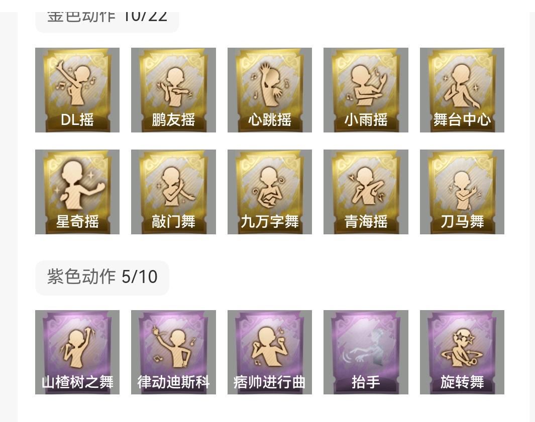【动作】刀马舞、DL摇、鹏友摇、心跳摇、小雨摇、舞台中心、星奇摇、敲门舞、九万字舞、青海摇、山