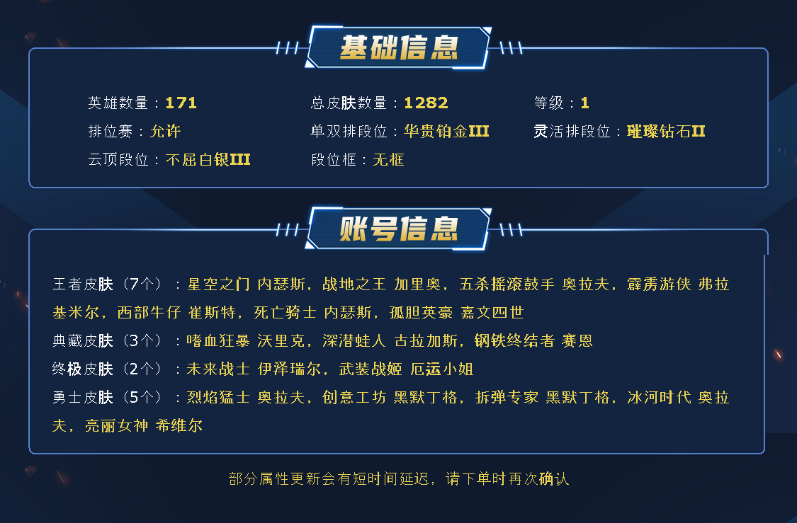 ~~喜欢记得收藏~~可排位~~1282皮全英雄丨911原皮371炫彩~~租之前尽量查一下游戏ID,确保段位是您需要的,避免浪费您的时间~~请勿挂机逃跑故意送人头,谢谢合作,谢谢~~