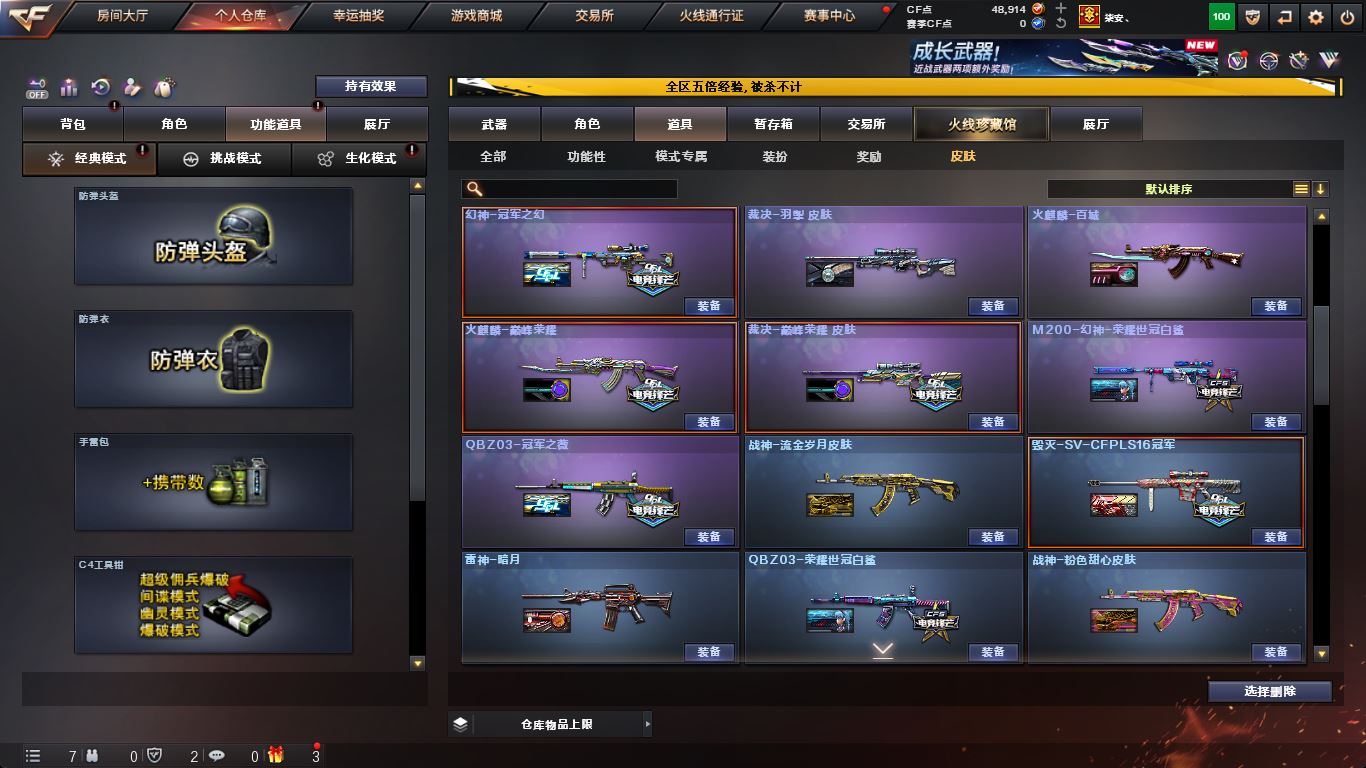 【亮点解析 四防传说角色 幻神三件套 98k星神三件套 生化烈龙+蝴蝶+蝴蝶刀+四防影煞 生化爆破号】 【四防传说影煞】 【传说幽瞳】 【M200-幻神+音效卡+纸灯龙+幻神-宠儿+幻神-冠军之幻+荣耀世冠白鲨】 【98k星神+音效卡+ag21冠军】 【王者星霆】 【王者风神】 【传说夜影】 【g36c幻影】 【传说破晓】 【qbz金色蔷薇+音效卡+巅峰荣耀+荣耀世冠白鲨】 【生化 6盘龙 2炼狱 6烈龙 蝴蝶】 【挑战 绝版擎天柱】 【裁决+巅峰荣耀】 【毁灭+音效卡+毁灭-荣耀之怒】 【火麒麟+音效卡巅峰荣耀】 【黑龙】 【雷神+音效卡+巅峰荣耀+雷神-lgd18冠军+雷神-宠儿+雷神-荣耀之魄+雷神-冠军之魄】 【黑骑士+音效卡】 【王者之怒】 【死神 黑武士 hk417-朱雀+音效卡】 【16手枪 修罗*5 天神 usp雷暴 cop幻灵 柯尔特荣耀世冠白鲨2023 冠军之特*2】 【20近战 冠军之刃*3 屠龙*7 龙啸 擎天 斩神刀雷暴 炽芒蝶刃蝴蝶刀 王者之锋*2 王者云击】 【手雷 雷霆雷 雷暴雷*4 电竞装甲*2 幻灵雷*5 云龙雷*2】 【四防 隼 王者葵貂蝉】