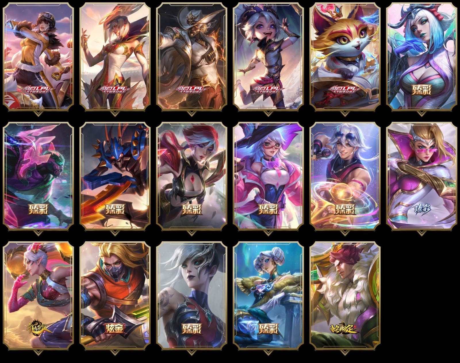【重要皮肤】灵魂莲华劫至臻 魂蔷薇烈娜塔至臻 玉剑传说琴仙子至臻 花仙使者卡特琳娜至臻 星之守护者辛德拉至臻 星之守护者艾克至臻 海之歌萨勒芬妮至臻 幻灵战斗猫金克丝至臻 女帝黛安娜至臻 太空律动璐璐至臻 魔女婕拉至臻 奥术师佐伊至臻 未来战士卢锡安至臻 真实伤害赛娜至臻 灵魂莲华提莫至臻 灵能特工伊泽瑞尔至臻 福牛守护者菲奥娜至臻 源计划逆流塞拉斯至臻 源计划阴劫至臻 王国机神玄武盖伦至臻 暗星墨菲特至臻 神龙尊者炎龙瑟提至臻 黑夜使者凯隐至臻 征服者贾克斯至臻 KDA二代卡莎至臻 KDA阿狸至臻 战斗学院拉克丝至臻 战斗学院拉克丝2022至臻 电玩女神凯特琳至臻 电玩女神凯特琳2022至臻 魅惑女巫厄运小姐至臻 魅惑女巫厄运小姐2022至臻 星之守护者妮蔻至臻 星之守护者妮蔻2022至臻 源计划正义艾瑞莉娅至臻 源计划正义艾瑞莉娅2022至臻 绒毛菲兹至臻 绒毛菲兹2022至臻 玉剑传说武剑仙至臻 玉剑传说武剑仙2022至臻 腥红之月亚托克斯至臻 腥红之月亚托克斯2022至臻 未来战士锤石至臻 黑夜使者李青至臻 黑夜使者李青2022至臻 殿堂传奇薇恩 灰烬骑士莫德凯撒 灰烬骑士派克 海克斯科技安妮 海克斯科技瑟庄妮 海克斯科技雷克顿 海克斯科技斯维因 海克斯科技吉格斯 海克斯科技玛尔扎哈 海克斯科技波比 海克斯科技嘉文四世 海克斯科技阿利斯塔 海克斯科技魔腾 水晶掠夺者卡兹克 恐惧新星德莱厄斯 零之枪骑赫卡里姆 新创战纪希维尔 哥特萝莉安妮 养蜂人辛吉德 勇敢的心德莱厄斯 电玩勇者锐雯 电玩女神阿狸 星之守护者伊泽瑞尔 玉剑传说舞龙卫 玉剑传说翼剑仙 龙腾虎跃瑟提 替父从军花木兰 碧玉之牙卡西奥佩娅 春晖神女拉克丝 北辰之威内瑟斯 定海神珍孙悟空 玉净夜叉凯特琳 广寒仙子嫦娥 纳财大帝塔姆 王国机神青龙德莱文 王国机神苍狼瑟提 王国机神玄武盖伦 福牛守护者德莱厄斯 胜利机器人布里茨 胜利女神奥莉安娜 胜利枪神卢锡安 胜利之剑亚托克斯 觅心猎手薇恩 圣诞老人德莱文 冬季仙境卡尔玛 狂心冰王图奇 魄罗骑士瑟庄妮 平安夜女神娑娜 圣诞糖果棒厄运小姐 魅惑女巫乐芙兰 魅惑女巫迦娜 魅惑女巫莫甘娜 魅惑女巫伊莉丝 大魔法锅布里茨 泳池派对普朗克 泳池派对格雷福斯 泳池派对雷克顿 送披萨的小姐姐希维尔 鸡里奥 克格汪 DRX千珏 EDG厄斐琉斯 EDG佛耶戈 EDG悠米 EDG佐伊 DWG崔斯特 DWG烬 DWG奈德丽 iG卡莎 SSG霞 SKTT1艾克 SKTT1奥拉夫 SKTT1阿利斯塔 SKTT1瑞兹 SKTT1雷克顿 SSW锤石 SSW雷恩加尔 SSW泰隆 SSW图奇 SSW辛吉德 SKTT1劫 SKTT1婕拉 SKTT1薇恩 暗杀星蒙多 暗杀星慎 Fnatic迦娜 Fnatic库奇 Fnatic嘉文四世 Fnatic卡尔萨斯 冰雪节格雷福斯 冰雪节辛吉德 冰雪兽纳尔 防暴士兵格雷福斯 防暴士兵辛吉德 钢铁之翼艾尼维亚 冠军掠夺者卡兹克 冠军之矛卡莉丝塔 冠军之刃锐雯2016 冠军之志瑞兹 鬼影森森茂凯 鬼影重重魔腾 海贼瑞兹 警用试作体K9内瑟斯 密林猎手提莫 南瓜头费德提克 圣诞精灵崔丝塔娜 圣诞开心鬼提莫 圣诞狂欢基兰 圣诞狂欢努努和威朗普 圣诞老人古拉加斯 圣诞玩偶波比 圣诞驯鹿克格莫 糖果使徒费德提克 外星装甲库奇 无头骑士赫卡里姆 邪恶圣诞老人维迦 幸福女神乐芙兰 雪默丁格 野兽猎人德莱文 野兽猎人瑟庄妮 英勇玩具兵普朗克 勇者阿狸 征服者阿利斯塔 征服者卡尔玛 暗影沃里克 阿木木主人不要我了 2022全球总决赛阿兹尔 2021全球总决赛嘉文四世 波比的巧克力工坊 都铎王朝图奇 十周年纪念安妮 源代码乐芙兰 神凰行者瑞羽圣凰艾尼维亚 斗魂觉醒莎弥拉 暗裔英雄盖伦 灵魂守卫乌迪尔 KDAALLOUT萨勒芬妮独立音乐人 KDAALLOUT萨勒芬妮明日新星 KDAALLOUT萨勒芬妮超级巨星
