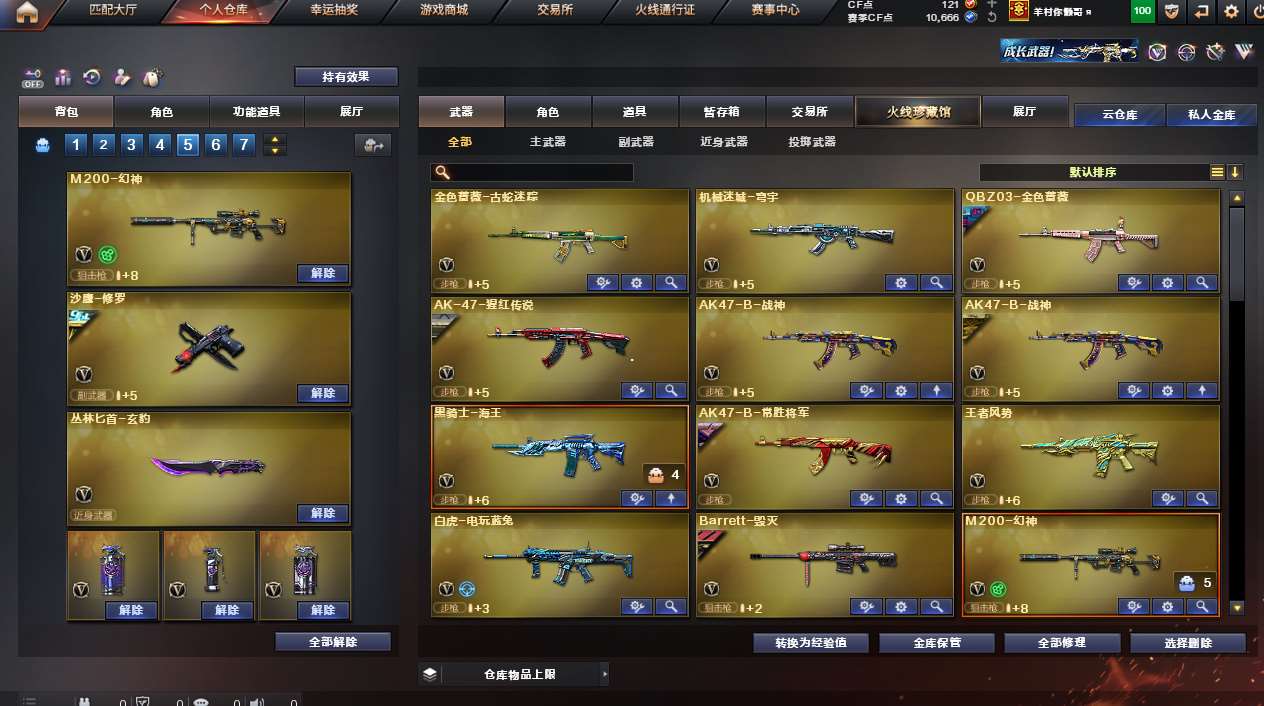 【传说影煞]十【m200-幻神 幻神紫橙光效]十【黑鲨-律动黄昏】+【丛林匕首玄豹+】【kar98k-星神]+【玄豹雷】十 【qbz03-金色蔷薇qbz03-荣耀世冠白鲨】十【白虎-电玩粉兔十【王者风势 炫金火麒麟]十【hk417-朱雀-蛇隐宗 cop-白鲨 斯泰尔-呛娘暗刃】十【aa12+擎天柱3*4】【机甲撕裂者3】【试炼破坏者3】【神圣爆裂者-末日3】【激光毁灭者超越4】【巡航者3】【惩戒者3】【火麒麟雷神 黑骑士 神兵利器 锦绣游龙超新星-热带奇洋金色蔷薇-古蛇迷踪猩红传说 战神 海王常胜将军毁灭 烈龙-云海游龙]十【角色: (四防)王者-春(四防)王者-魅影鹰 蛇隐宗奇洋探员 云海玲珑】十夺命之镰防化服c4工具钳 手雷包