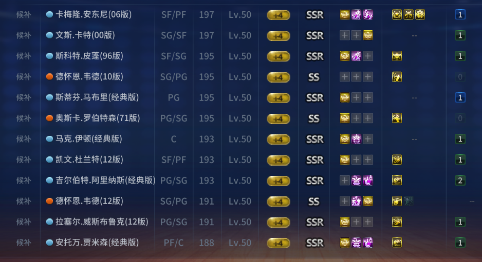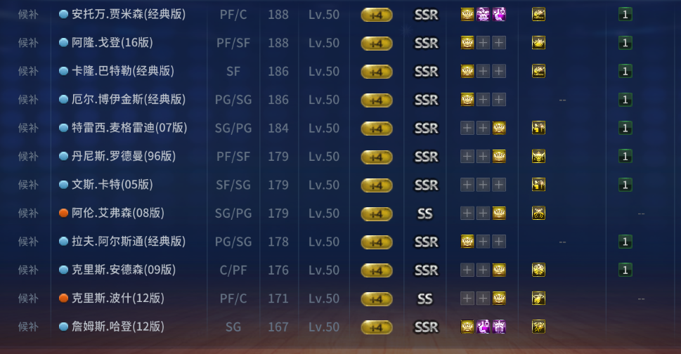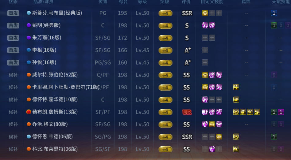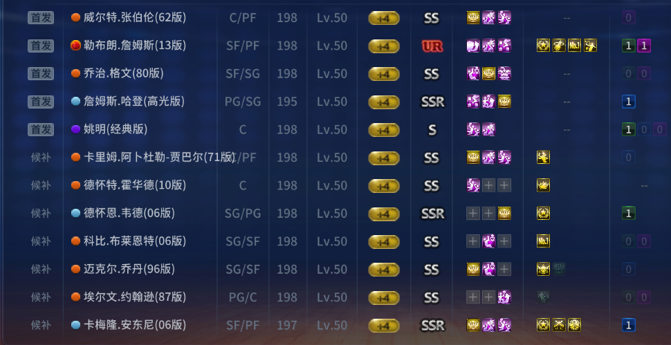 纯十sg,UR詹姆斯,姚明带队中国队,贾巴尔、格纹、乔丹、安东尼、科比、魔术师等