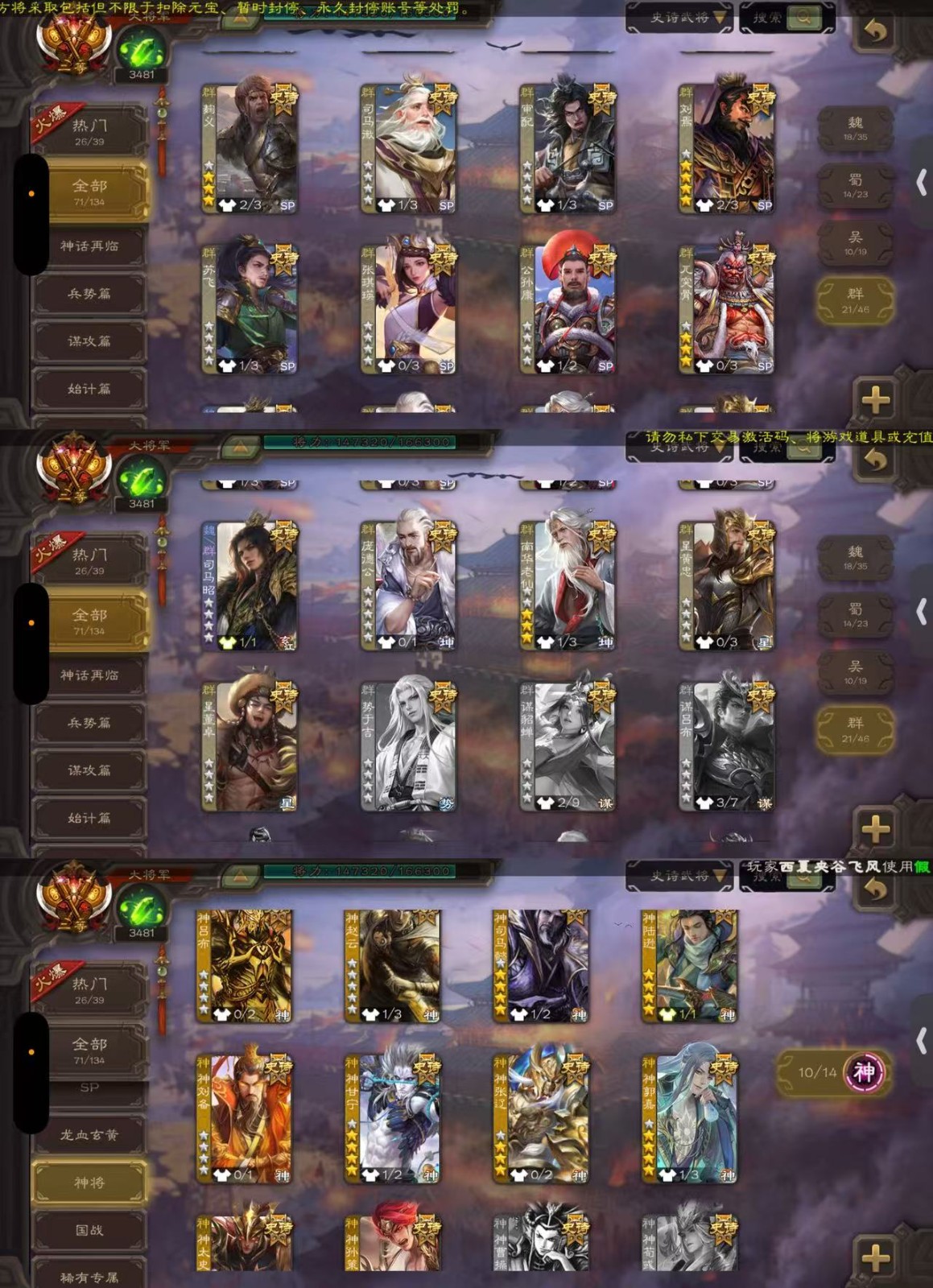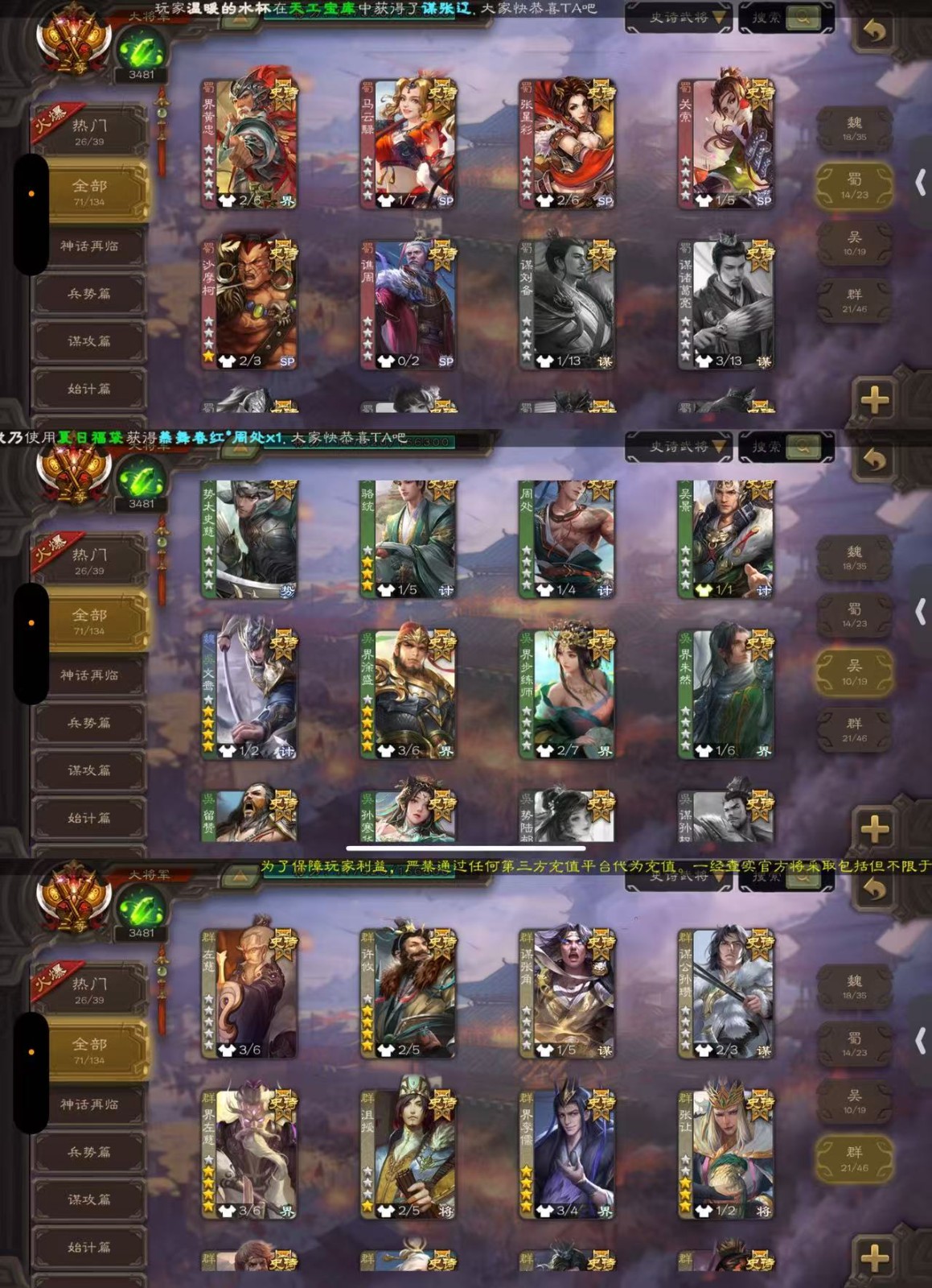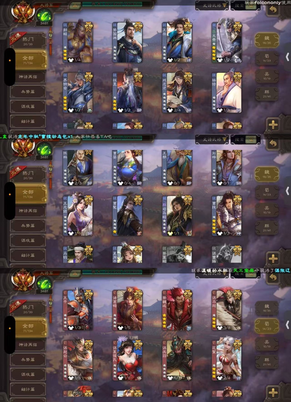 新品势国渊,火龙果势魏延,新能源势太史慈,新梦廊动态刘焉,热门曹髦,双形态司马昭,溜溜球动态神司马懿,梦廊动态文鸯,骚动态孙寒华,霸王动态神孙策,动态神郭嘉,动态神甘宁,明良千古动态谋关羽,梦廊动态神太史慈,动态神陆逊,灵魂歌王留赞,虎豹骑老虎,梦廊动态白马,冠绝天下动态南华老仙,盛气凌人动态许攸,动态界钟会,动态戏志才,动态界左慈,动态界李儒,马均王元姬,曹婴,骆驼,张琪英,谋公孙瓒,神吕布,庞德公,性价比64ss二等大将