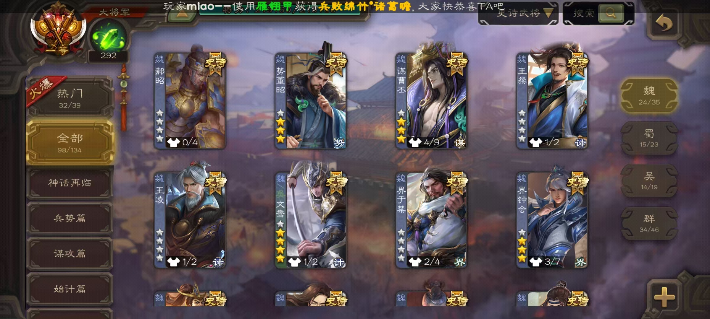 98/史诗武将数量