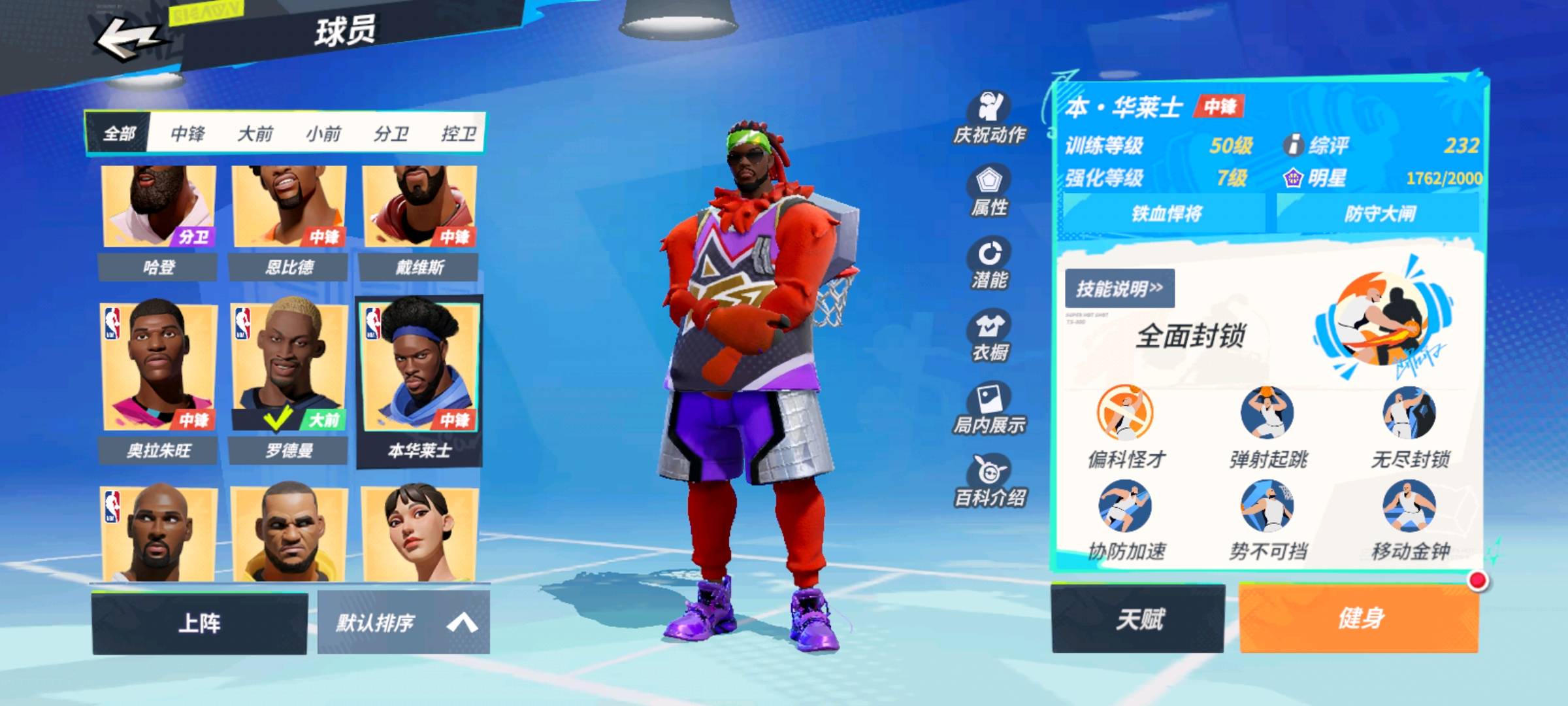 5满4中锋内线号。7唐斯7大本7大虫7马龙 7哈登