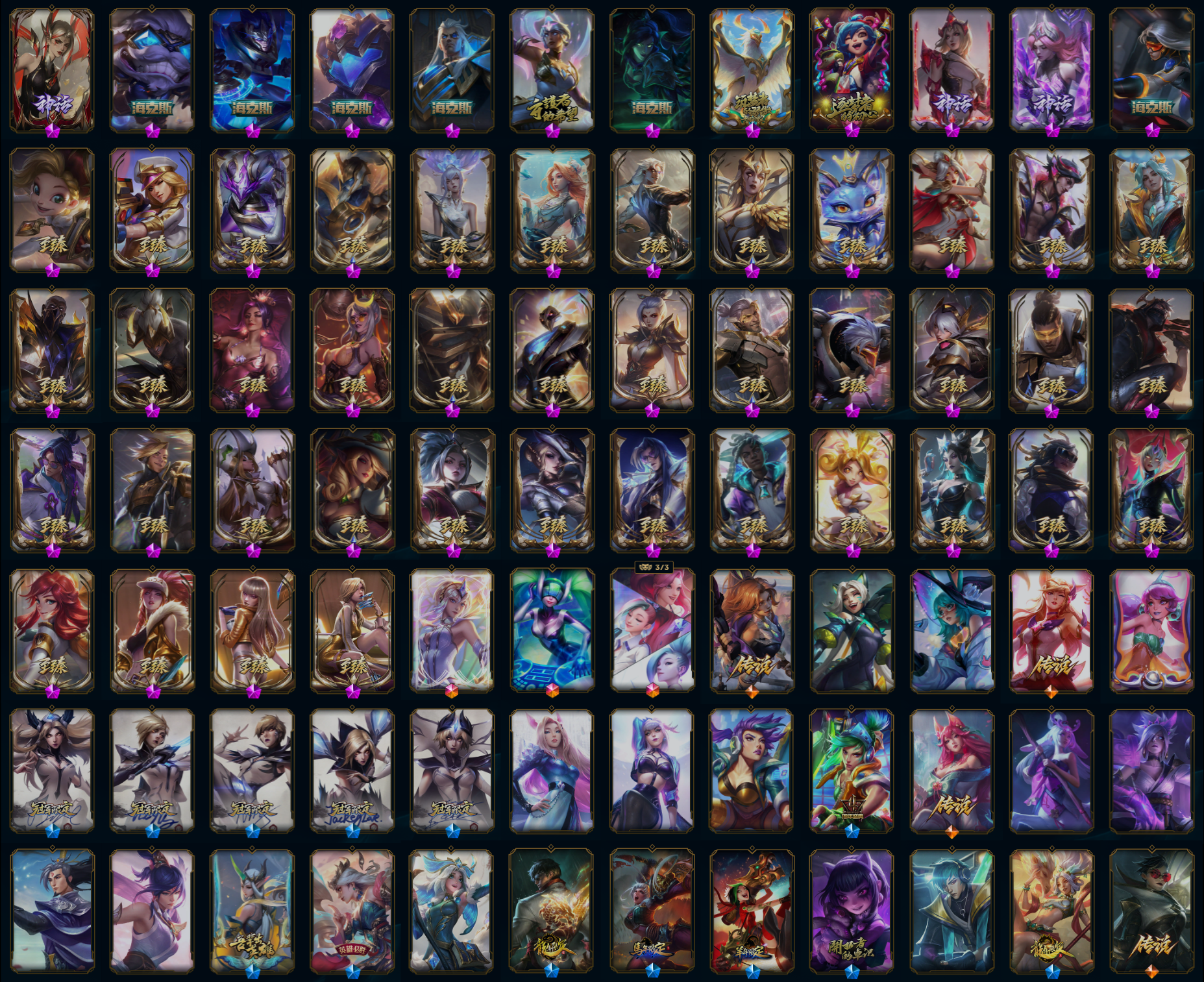 【重要皮肤】人工智能悠米至臻 至高天凯尔至臻 西部魔影伊芙琳至臻 天龙之子伊泽瑞尔至臻 神龙尊者比翼之龙洛至臻 心之钢永恩至臻 魔女阿卡丽至臻 斗魂觉醒萨科至臻 斗魂觉醒派克至臻 剪纸仙灵希维尔至臻 灵魂莲华易至臻 海珀利安小队X09星环灵风迦娜至臻 星之守护者辛德拉至臻 星之守护者艾克至臻 海之歌萨勒芬妮至臻 西部魔影猎天使恶魔泰隆至臻 神凰行者烈羽焰凰霞至臻 魅惑女巫莫甘娜至臻 魔女乐芙兰至臻 奥术师佐伊至臻 未来战士卢锡安至臻 真实伤害赛娜至臻 灵能特工伊泽瑞尔至臻 源计划逆流塞拉斯至臻 源计划阴劫至臻 王国机神玄武盖伦至臻 黑夜使者凯隐至臻 飞升战神潘森至臻 KDA一代卡莎至臻 KDA卡莎2022至臻 KDA伊芙琳至臻 KDA伊芙琳2022至臻 KDA阿卡丽至臻 战斗学院拉克丝至臻 战斗学院拉克丝2022至臻 烈焰美人薇恩至臻 烈焰美人薇恩2022至臻 电玩女神凯特琳至臻 电玩女神凯特琳2022至臻 魅惑女巫厄运小姐至臻 星之守护者妮蔻至臻 源计划正义艾瑞莉娅至臻 源计划正义艾瑞莉娅2022至臻 玉剑传说武剑仙至臻 玉剑传说武剑仙2022至臻 未来战士锤石至臻 未来战士锤石2022至臻 黑夜使者李青至臻 黑夜使者李青2022至臻 殿堂传奇乐芙兰 海克斯科技斯维因 海克斯科技吉格斯 海克斯科技嘉文四世 海克斯科技阿利斯塔 海克斯科技阿木木 海克斯科技拉莫斯 水晶圣骑艾希 水晶圣骑蕾欧娜 黎明使者卡尔玛 摄魂使者薇恩 新创战纪希维尔 胜利女神娑娜 胜利女神希维尔 胜利之王泰达米尔 胜利巨口克格莫 哥特萝莉安妮 荣誉使者玛尔扎哈 电玩勇者锐雯 玉剑传说无劫 玉剑传说星仙子 玉剑传说翼剑仙 龙的传人李青 天龙之子迦娜 替父从军花木兰 神龙烈焰金克丝 碧玉之牙卡西奥佩娅 张辽文远 胜利之树茂凯 胜利机器人布里茨 胜利女神奥莉安娜 胜利枪神格雷福斯 胜利枪神卢锡安 胜利之剑亚托克斯 觅心猎手薇恩 寒冬精灵璐璐 圣诞老人布隆 冰雪风暴希维尔 魄罗骑士瑟庄妮 平安夜女神娑娜 圣诞糖果棒厄运小姐 魅惑女巫迦娜 魅惑女巫崔丝塔娜 送披萨的小姐姐希维尔 鸡里奥 克格汪 DWG烬 DWG蕾欧娜 iG卡蜜尔 iG洛 iG卡莎 iG艾瑞莉娅 iG乐芙兰 iG菲奥娜 SSG纳尔 SKTT1烬 SKTT1辛德拉 SKTT1艾克 SKTT1阿利斯塔 SKTT1卡莉丝塔 SKTT1瑞兹 SKTT1阿兹尔 SKTT1伊莉丝 SSW泰隆 SSW图奇 SKTT1劫 SKTT1婕拉 SKTT1薇恩 暗杀星蒙多 暗杀星慎 Fnatic库奇 Fnatic古拉加斯 Fnatic卡尔萨斯 防暴天使凯尔 冠军典狱长锤石 冠军之矛卡莉丝塔 冠军之刃锐雯 冠军之血希瓦娜 鬼影森森茂凯 鬼影重重魔腾 海贼瑞兹 胡桃夹子萨科 惊悚派对阿木木 警用试作体K9内瑟斯 密林猎手提莫 南瓜头费德提克 圣诞狂欢基兰 圣诞老人古拉加斯 糖果使徒费德提克 喜庆之树茂凯 邪恶圣诞老人维迦 雪装奈德丽 英勇玩具兵普朗克 永恒之森乐芙兰 勇者阿狸 暗影沃里克 魅惑女巫辛德拉 阿木木主人不要我了 波比的巧克力工坊 都铎王朝图奇 十五周年纪念希维尔 十周年纪念安妮 源代码乐芙兰 神凰行者瑞羽圣凰艾尼维亚 DJ娑娜 大元素使拉克丝 未来战士伊泽瑞尔 KDAALLOUT萨勒芬妮独立音乐人 KDAALLOUT萨勒芬妮明日新星 KDAALLOUT萨勒芬妮超级巨星 星之守护者净化之羽霞