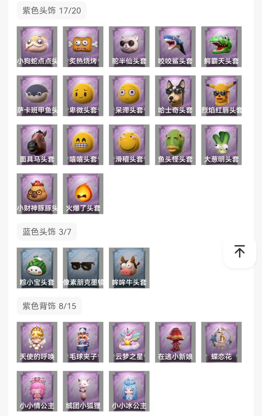【紫色皮肤】小黄-异色序曲、阿念-迷途僵宝、莉莉-除妖小师妹、零-赤炼将军、薇薇安-黑月挽歌、小黄-青丘一梦、阿念-王子与骑士、莉莉-情公主、艾伦-水王子、爱丽丝-冰公主、小黄-罗丽、薇薇安-白光莹、逍遥-泽引山海、阿念-灵昭鹿鸣、爱丽丝-瑞羽衔春、小黄-霓裳踏雪、零-青云逸歌、巫铃儿-素影瑶光、爱丽丝-丝缕哀歌、逍遥-绣春逍影、小黄-呱呱雨衣