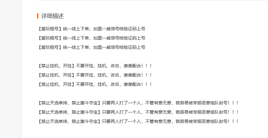 租赁押金:0元(不得使用外挂等第三方软件,违反将会扣除押金)
