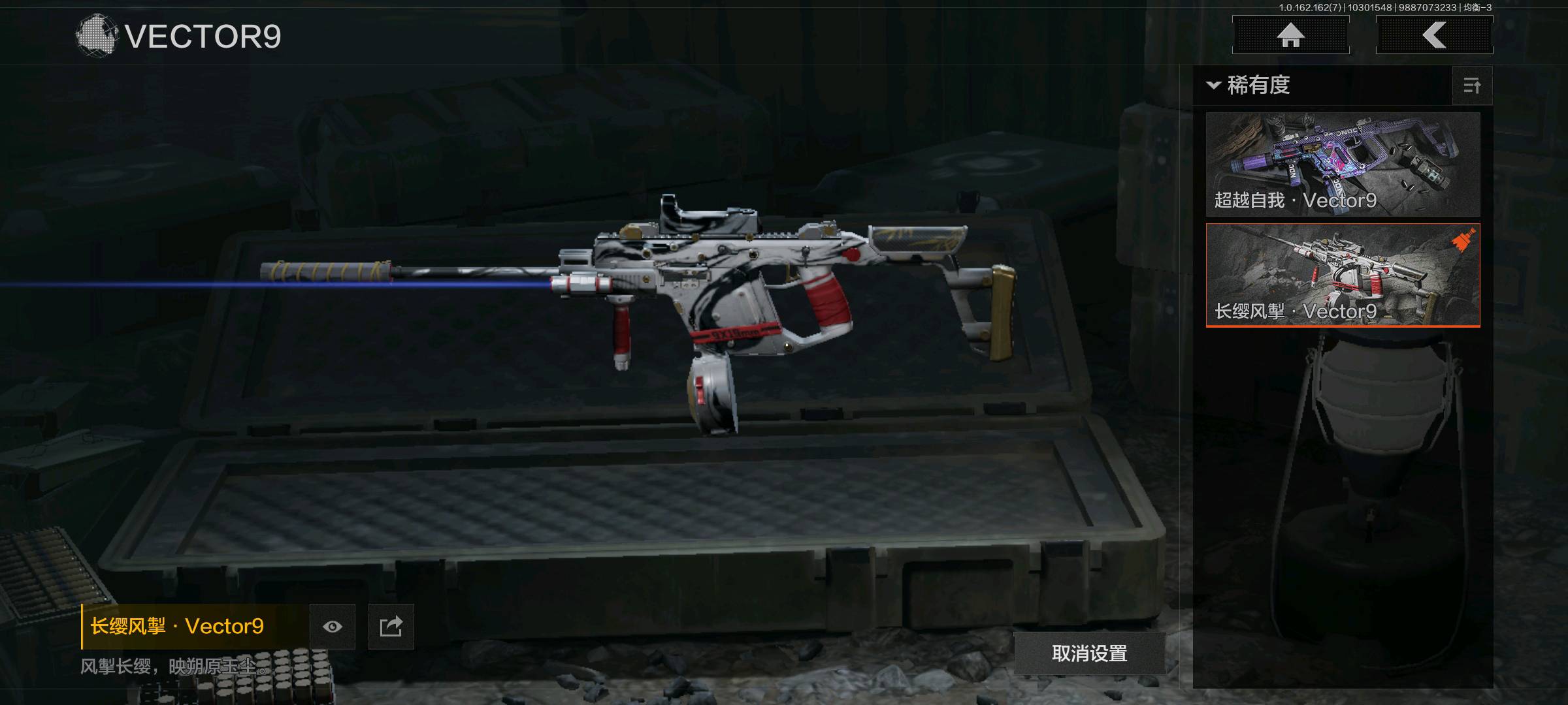 利齿风暴MPX,长缨风掣Vector9,湖冰倒影MP5,掌中盾MP5,缟兵玄墨MPX,玄戈梨花MPX,雪山之王MPX,涂鸦MPX,高塔之内P90,灰鼠幻歌P90,禁止访问UMP45,鱼跃丹青T85,利齿风暴T79,超越自我Vector9;